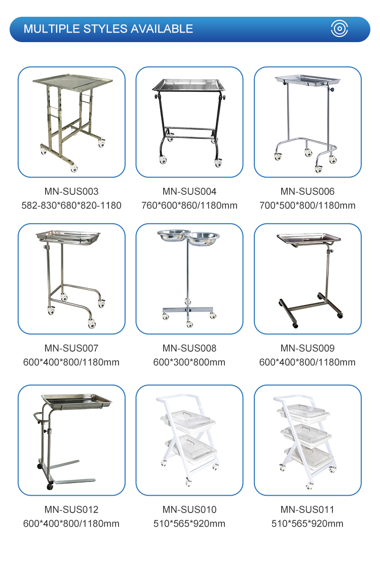 MN-SUS003 Portable Emergency Medical Device Cart Stainless Steel Trolley for Hospital Use