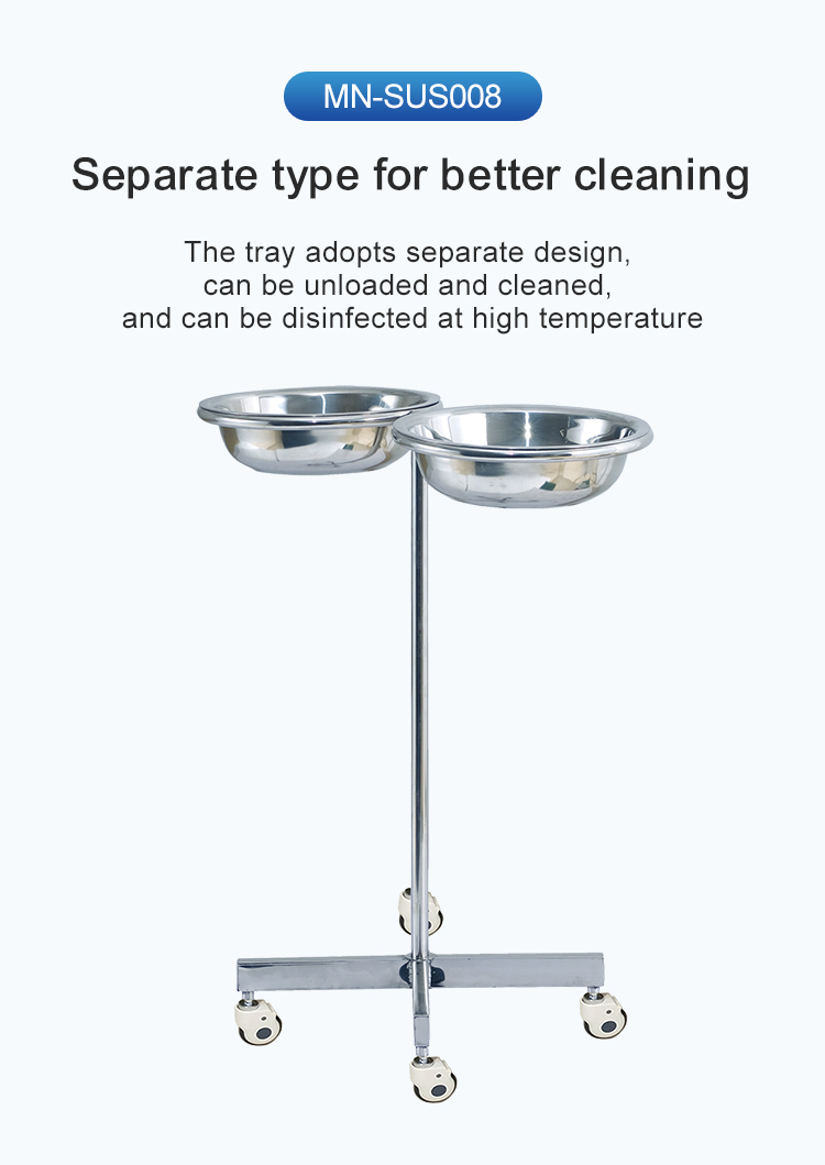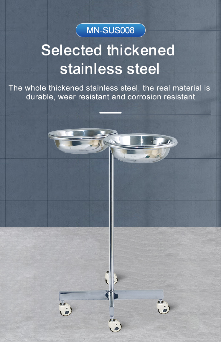 MN-SUS008 Hospital Furniture 304 Stainless Steel Trolley Wash Basin