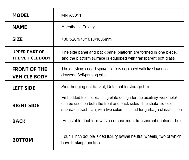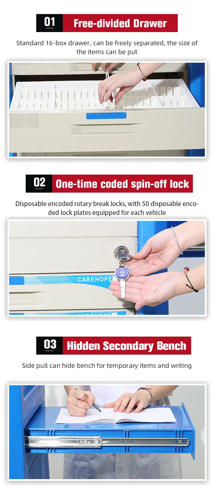 MN-AC011 Medical ABS plastic drawer, aluminum alloy column, emergency trolley float, practical