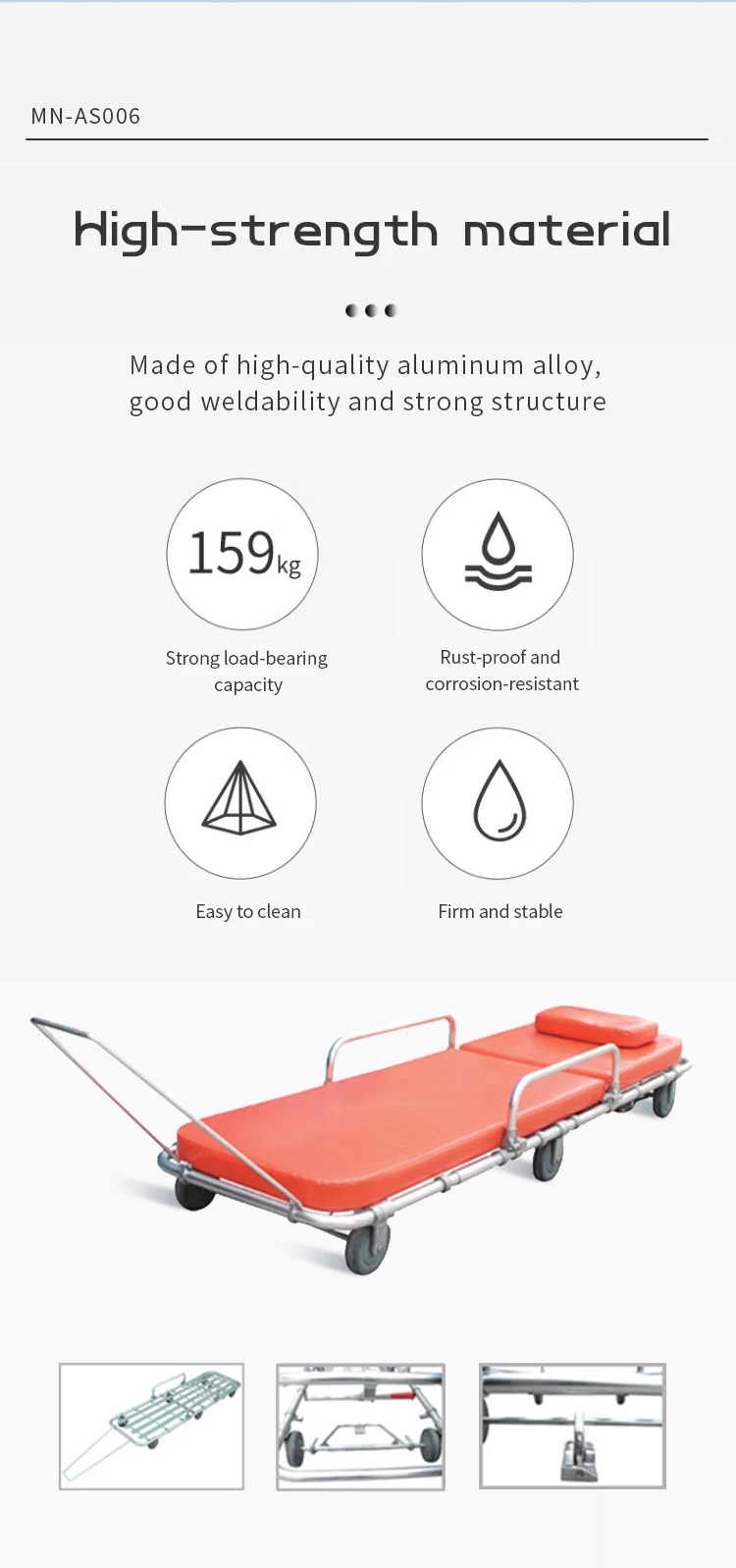 MN-AS006 Manual Ambulance Stretcher Patient Emergency Transfer Trolley With Good Price