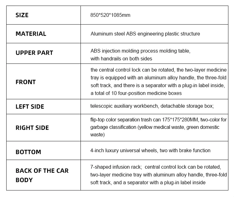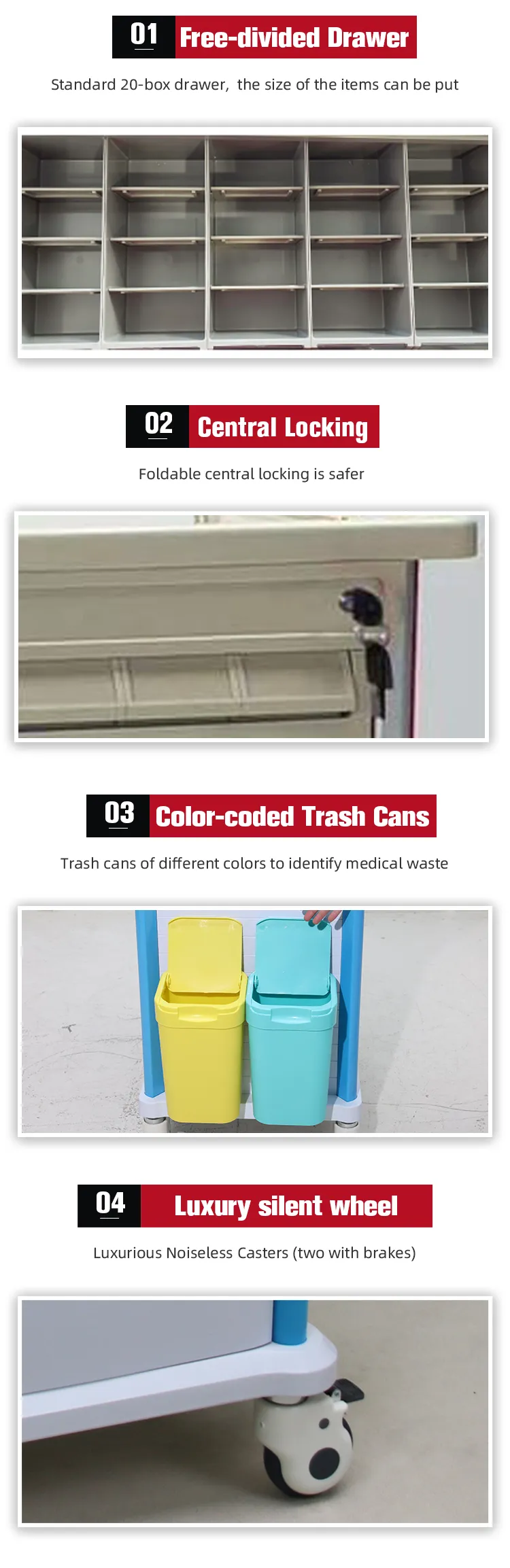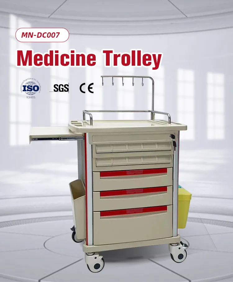 MN-DC007 Health care equipment, hospital ABS clinical storage trolley furniture, mobile trolley for patients to work