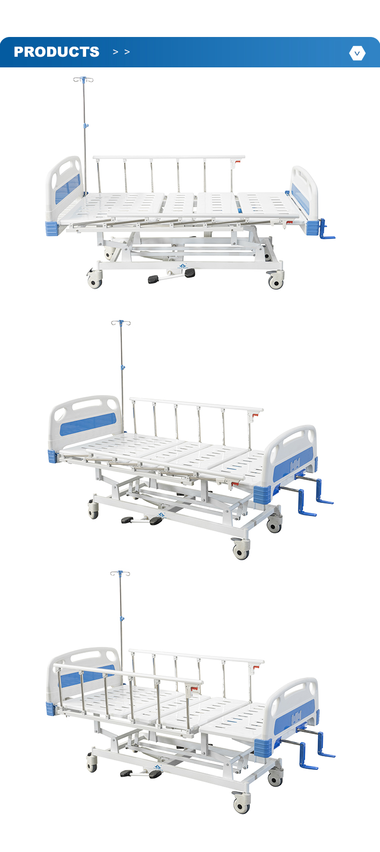 China suppliers wholesale 3 functions manual Medical equipment icu hospital bed