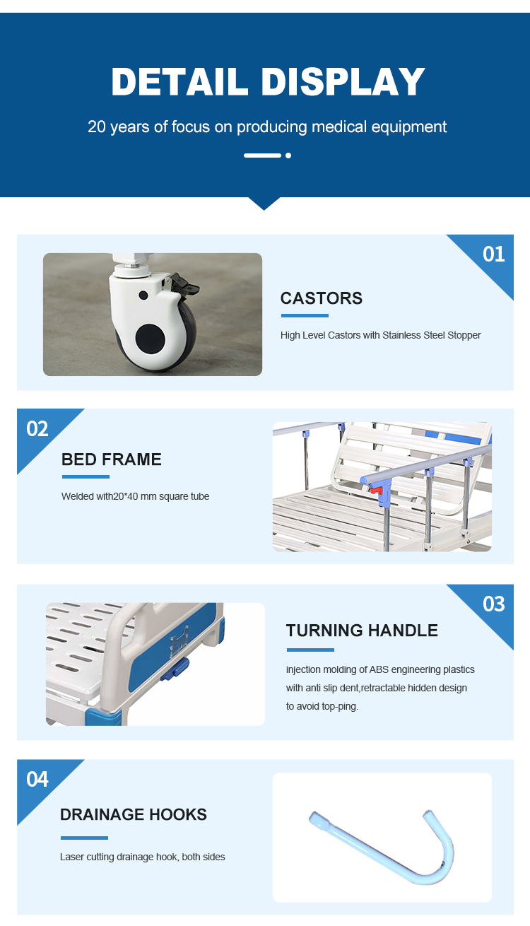 New Design MN-MB013A Medical Equipment Hospital Patient Bed with ABS Head and Foot Board