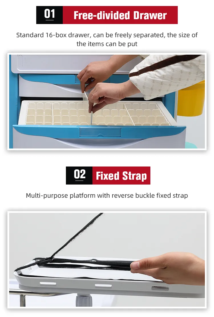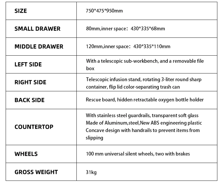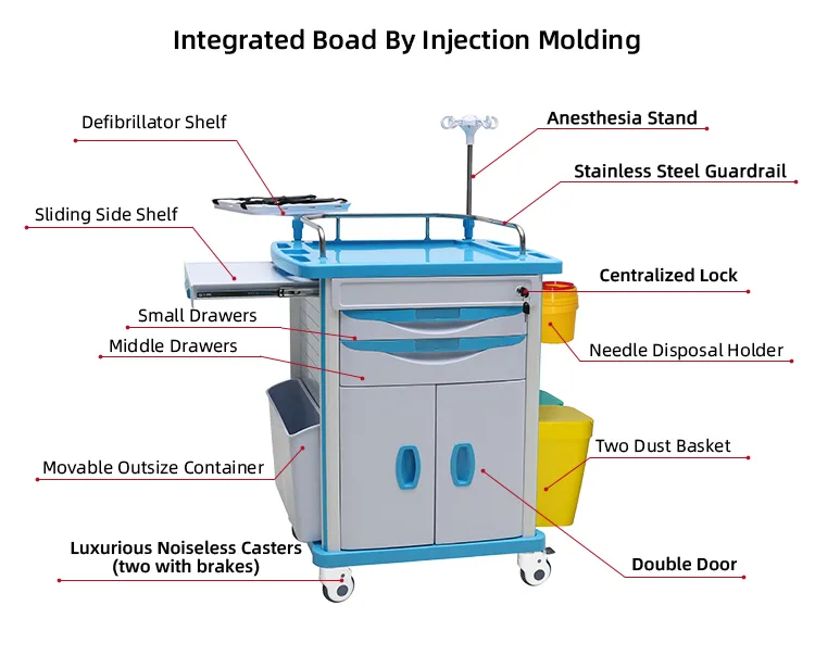 MN-EC001B Medical ABS emergency medical trolley, nursing medical trolley, multi-functional medical trolley