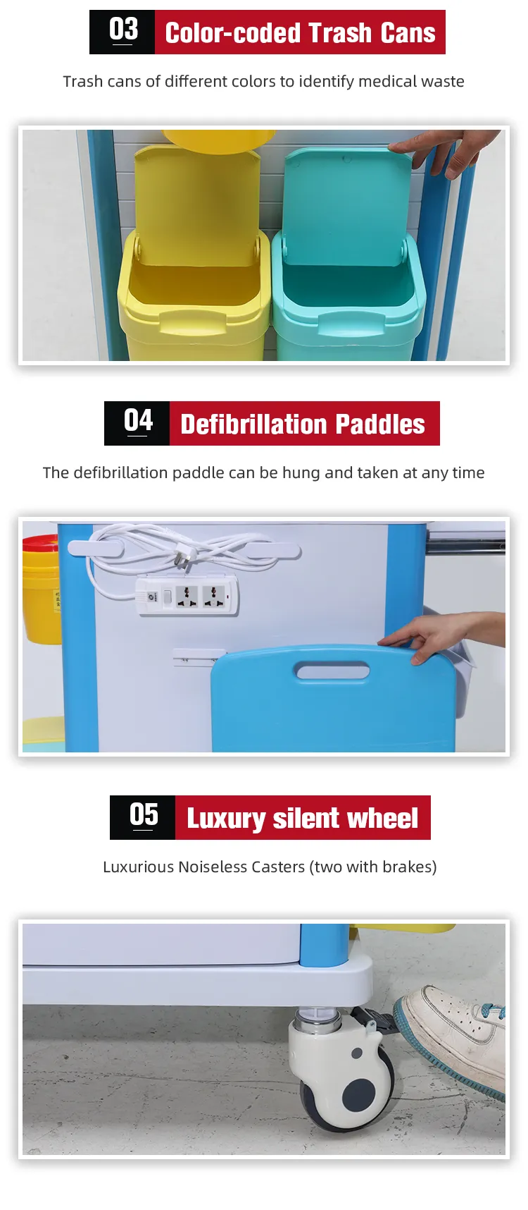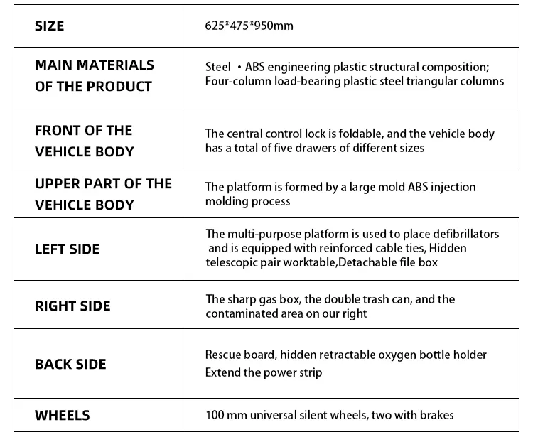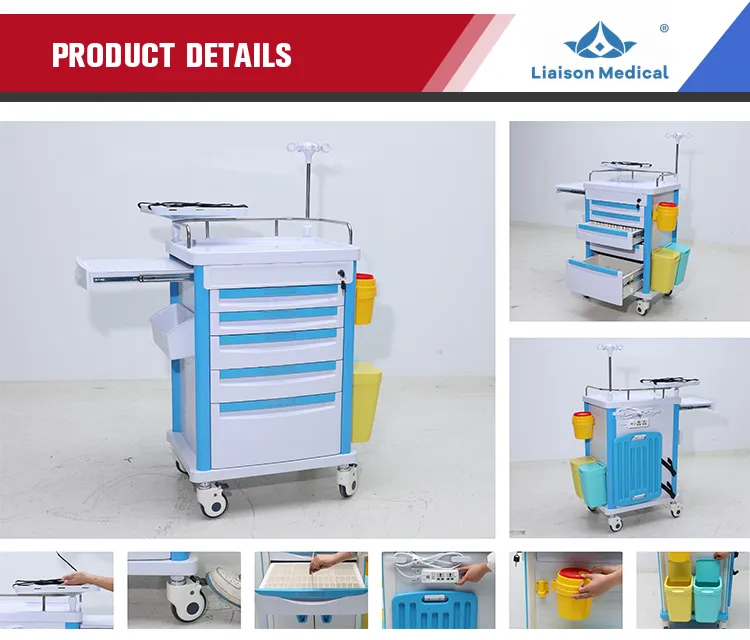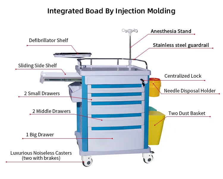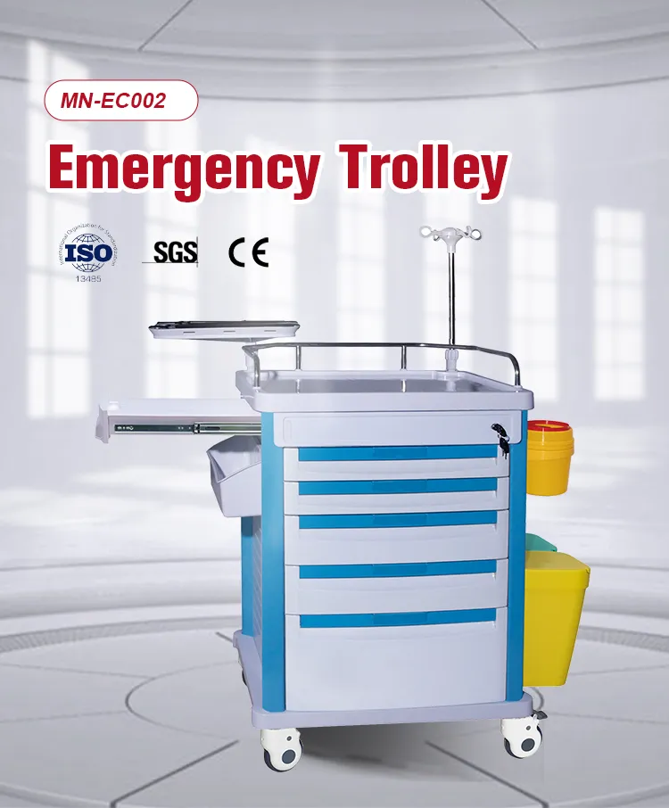 MN-EC002 Factory wholesale of hospital, clinic and ward furniture, ABS medicine carts with intravenous drip racks and first aid trolleys