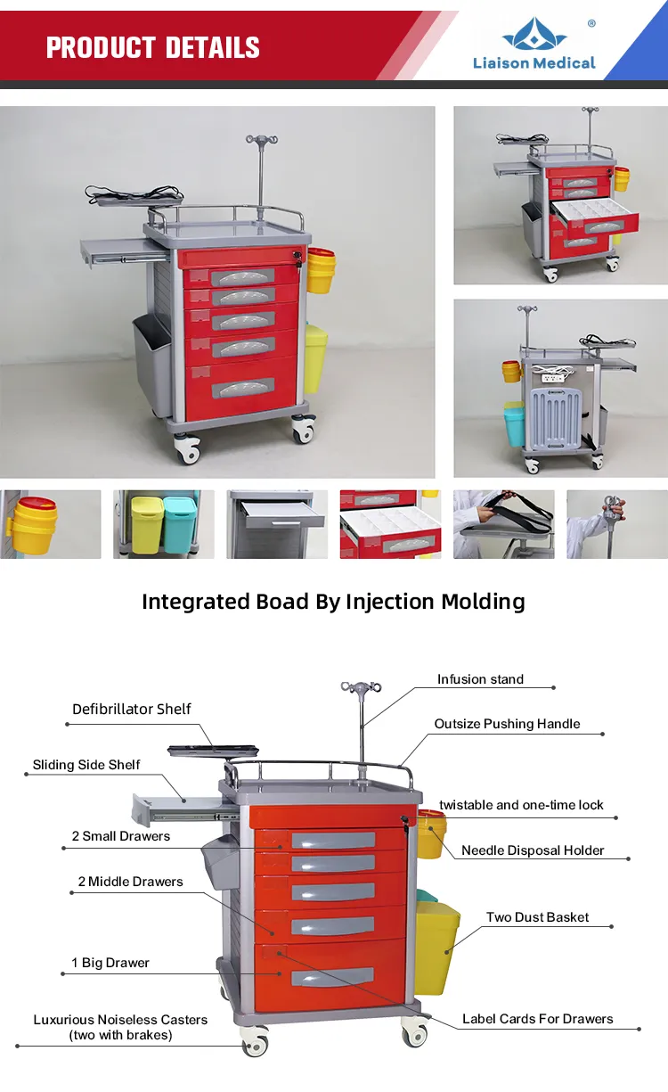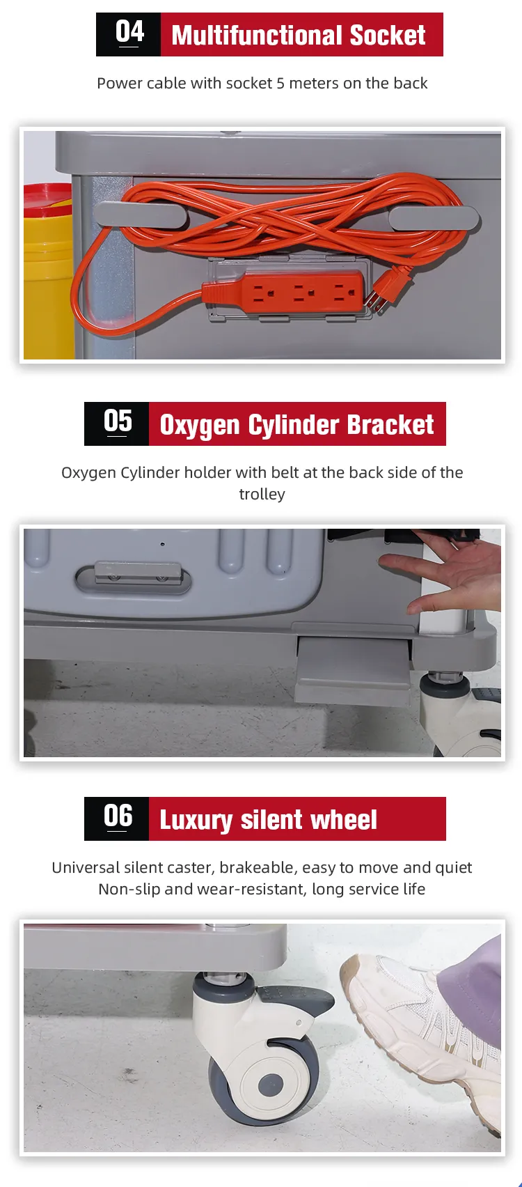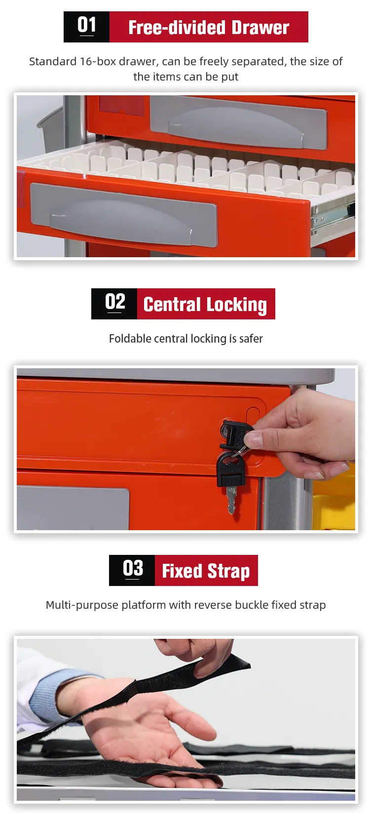 MN-EC015 Emergency ABS Hospital Medical Multi Function Trolley Hospital Car Direct Sales New Nurse Mobile Drug Crash Cart