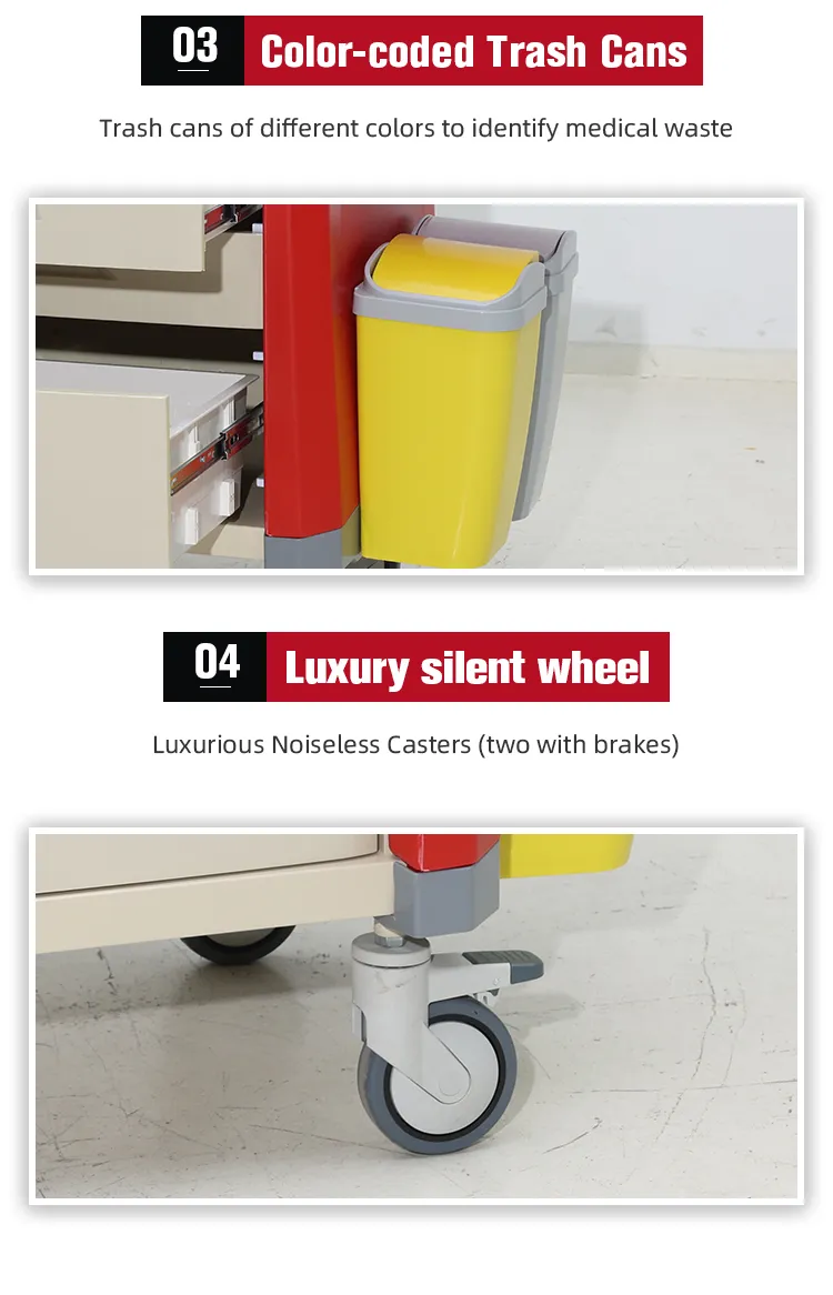 MN-EC016 Emergency medicine, Abs plastic, practical notebook computer, hospital mobile medical care cart, trolley