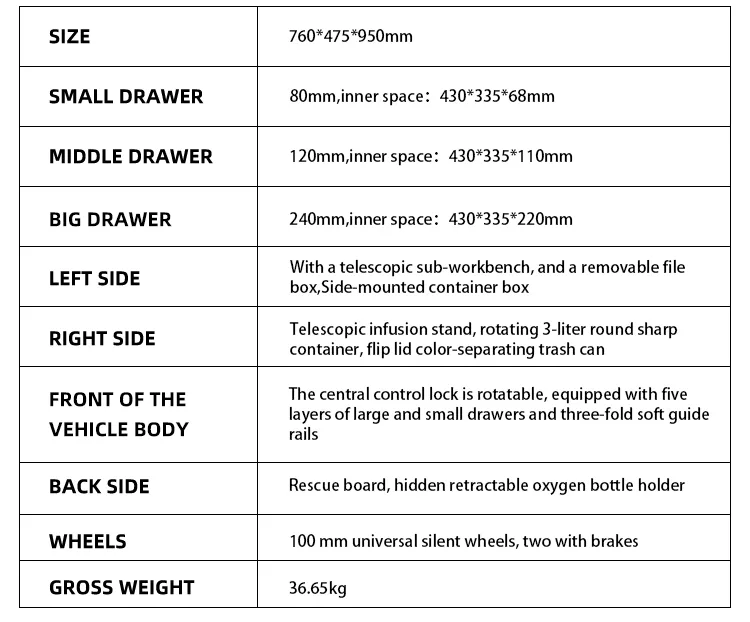MN-EC0017 Hospital equipment anti-lock braking system, emergency trolley, ambulance, medicine storage cabinet