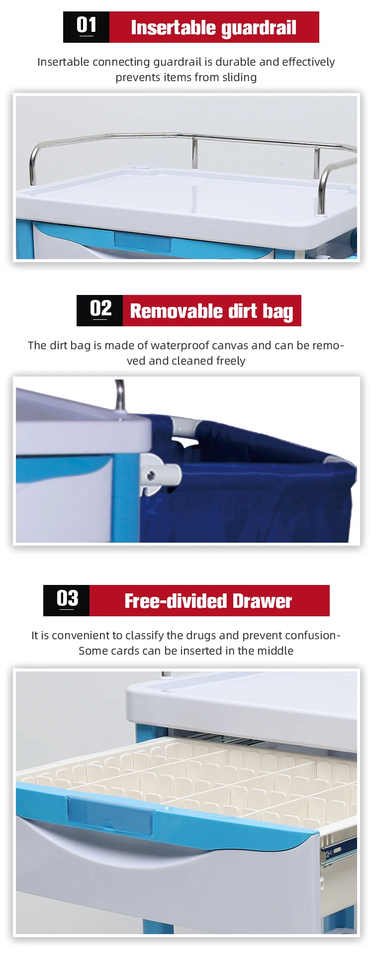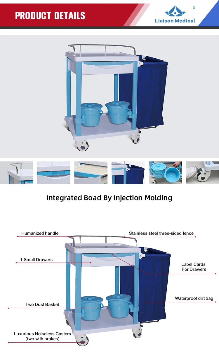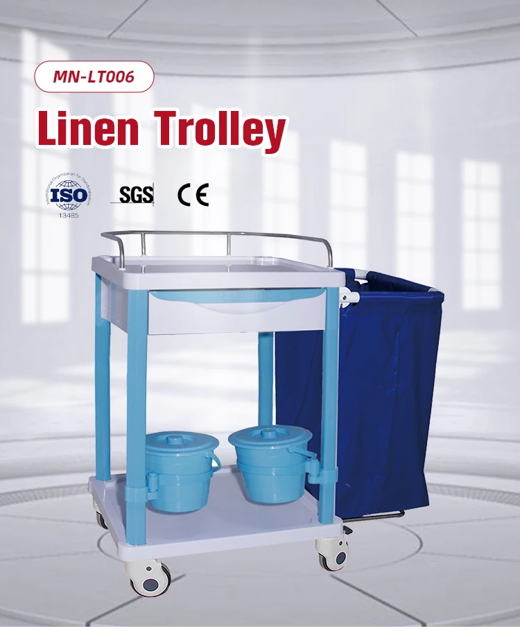 MN-LT006 Hospital Furniture Medical ABS Linen Cart With Dustbin