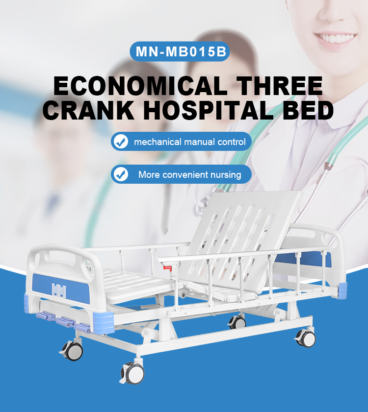 MN-MB015B Economical Three Crank Hospital Bed with Integral Cold Steel Sheet Punch Forming