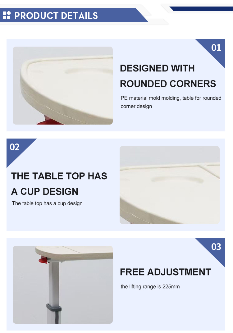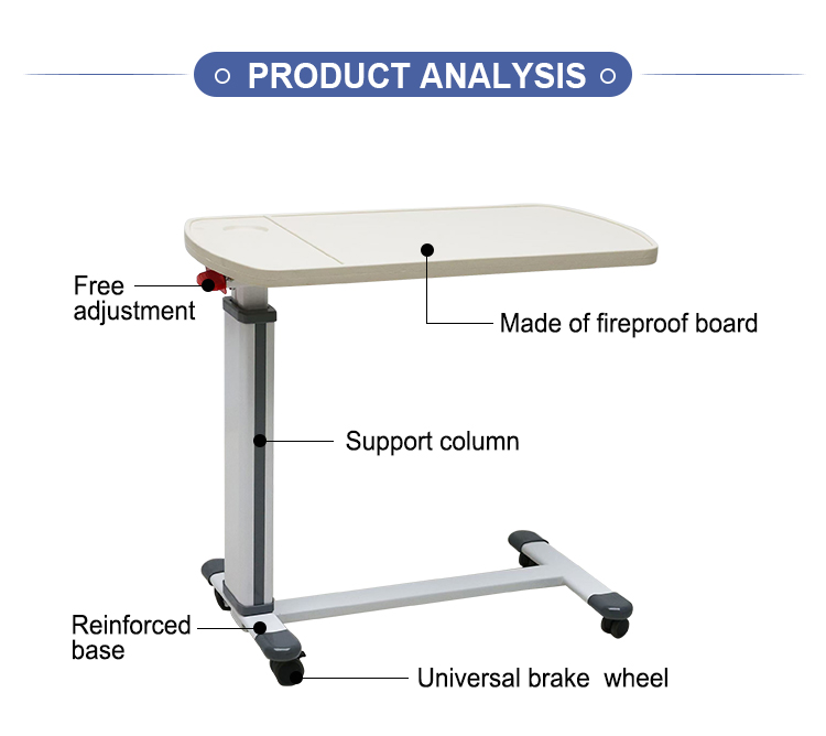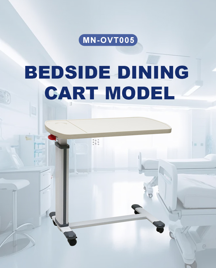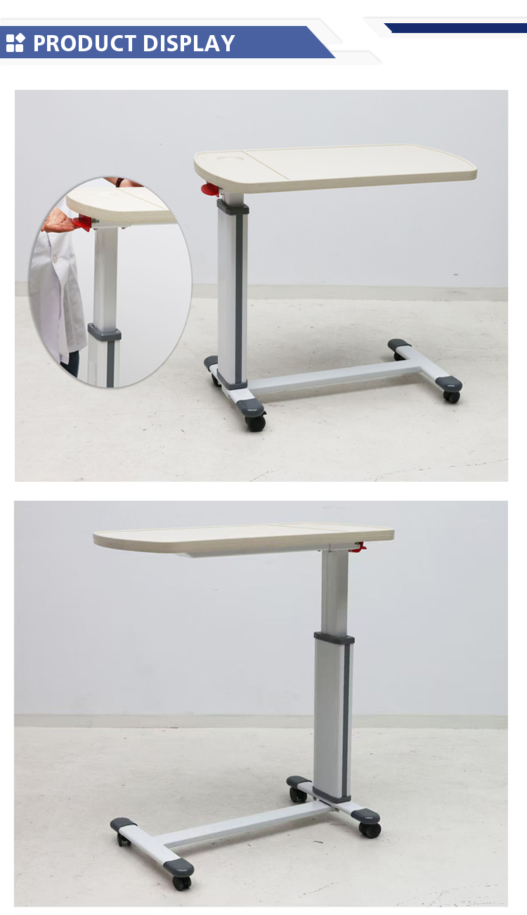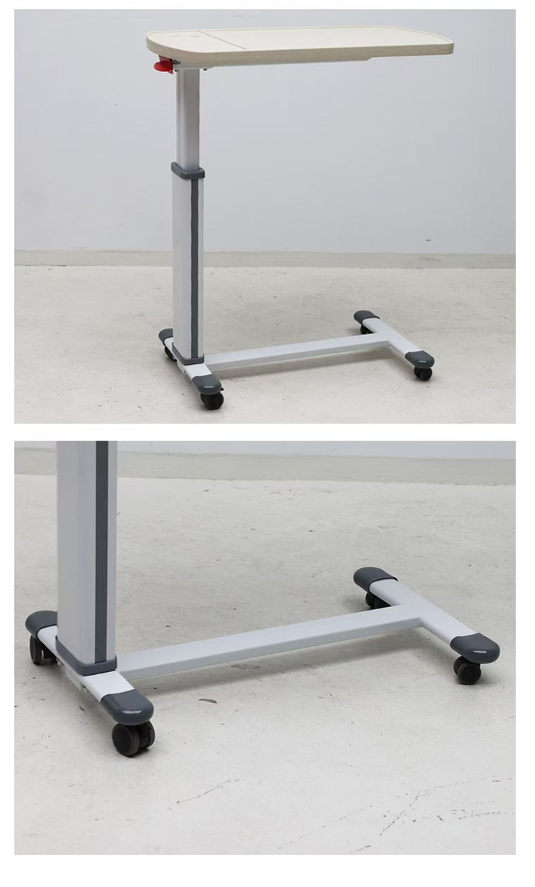 MN-OVT005 Hospital Furniture Low Adjustable Bedside Dining Gas-Spring Laptop Overbed Table for Patient