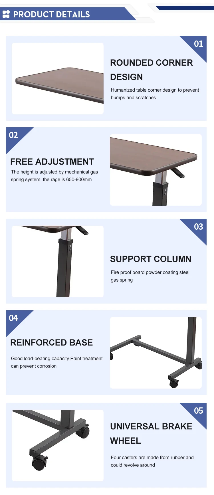 The height is adjusted by mechanical gas spring system, the rage is 650-900mm