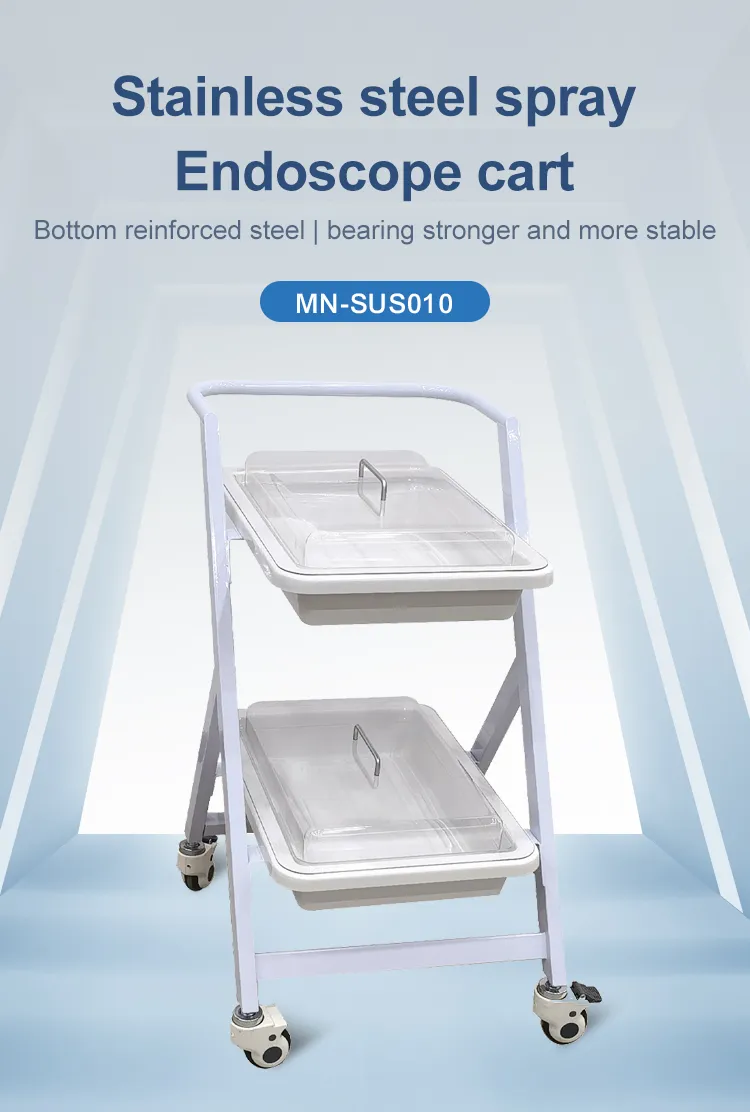 MN-SUS010 Medical double-layer endoscope trolley, endoscope trolley, colonoscope, gastroscope, fiberoptic bronchoscope tray rack