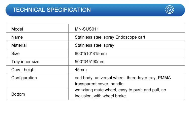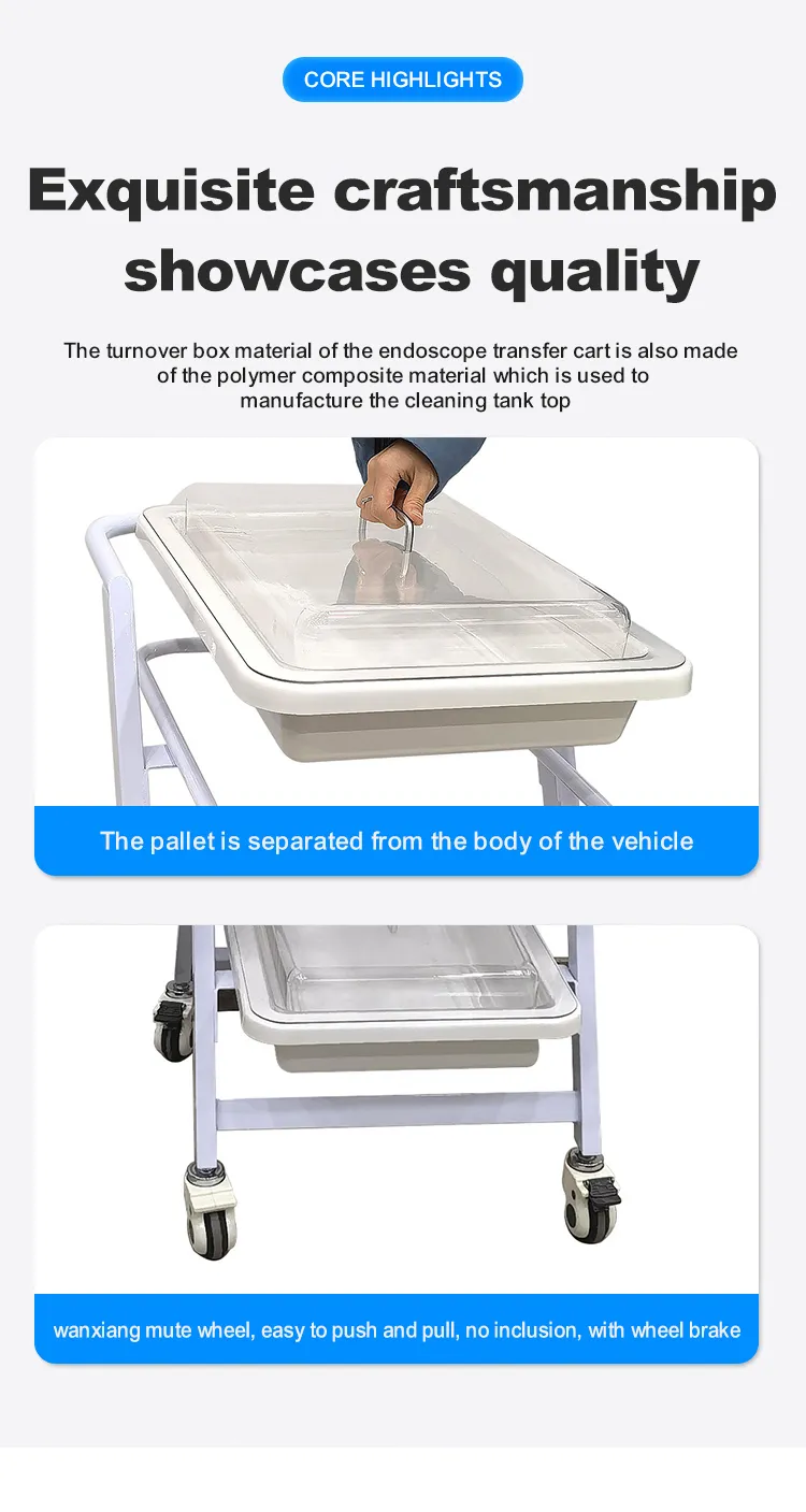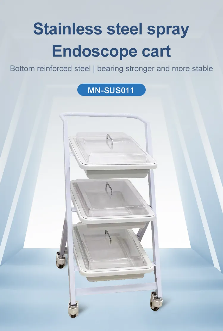 MN-SUS011 Medical three-layer endoscope trolley, endoscope transporter, colonoscope, gastroscope, fiberoptic bronchoscope tray rack
