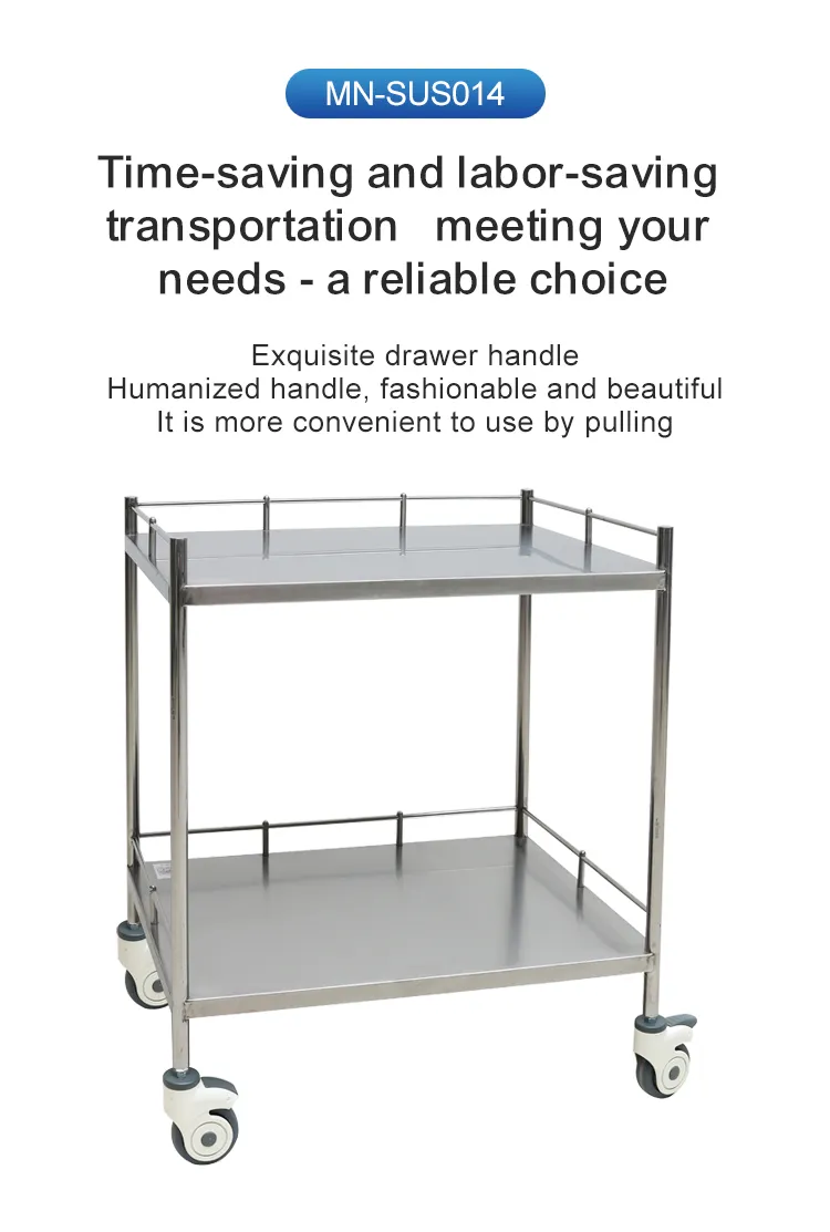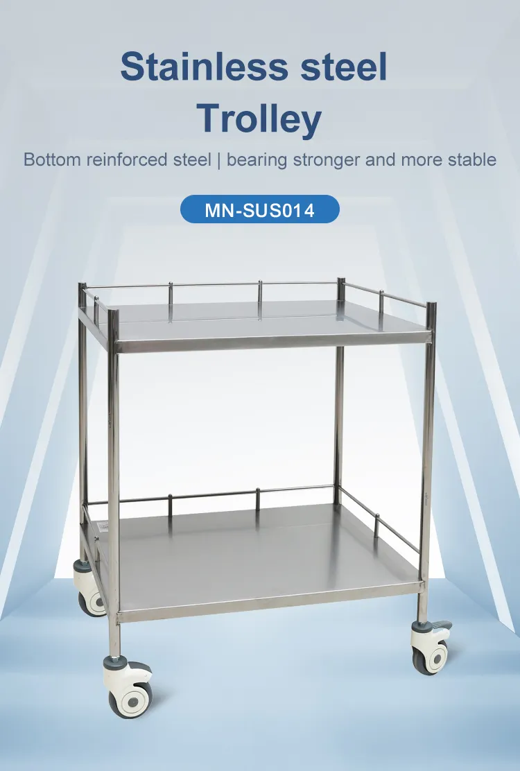 MN-SUS014 Double-layer silent four-wheel medical device trolley, multi-purpose stainless steel for chemical industry