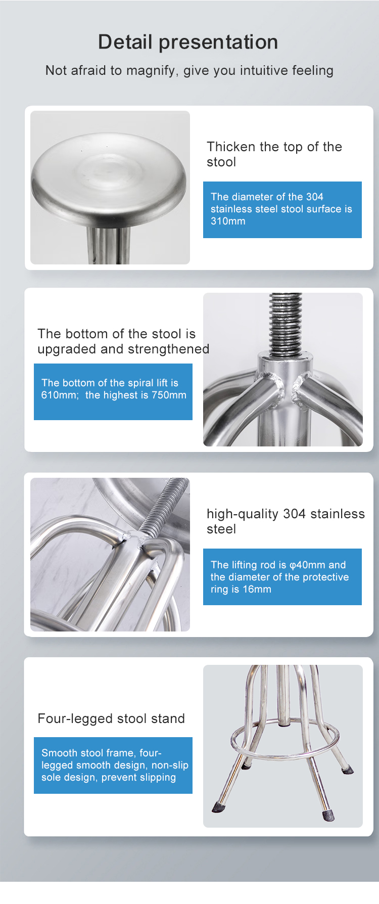 MN-SUS015 Hospital Furniture Stainless Steel Adjustable Laboratory Stool Medical Office Doctor Chair