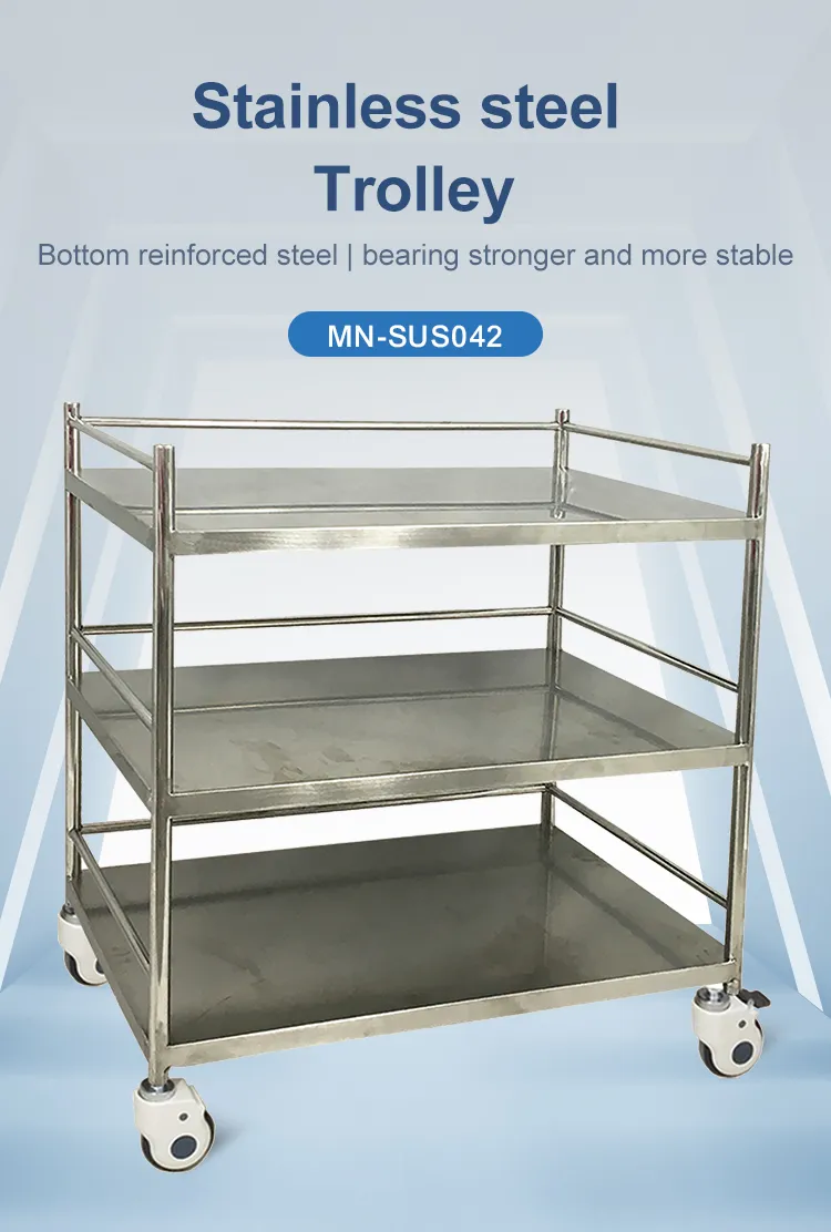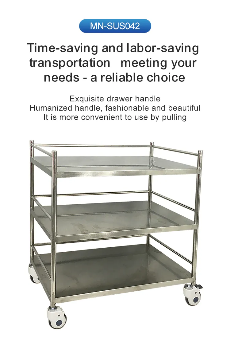 MN-SUS042 Hospital trolley, stainless steel trolley, three-layer instrument trolley, surgical trolley, nursing trolley, dressing change trolley, instrument trolley, nursing trolley