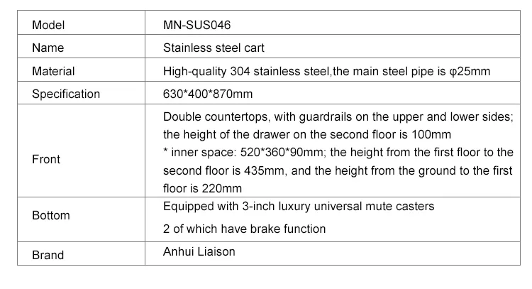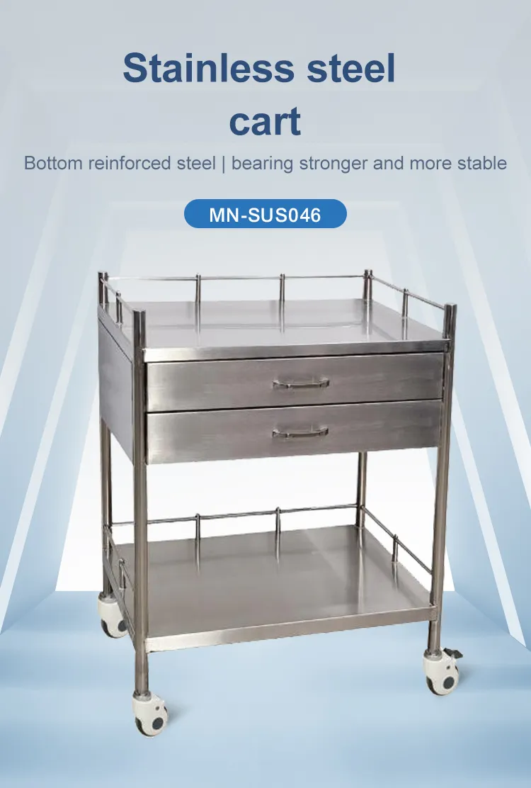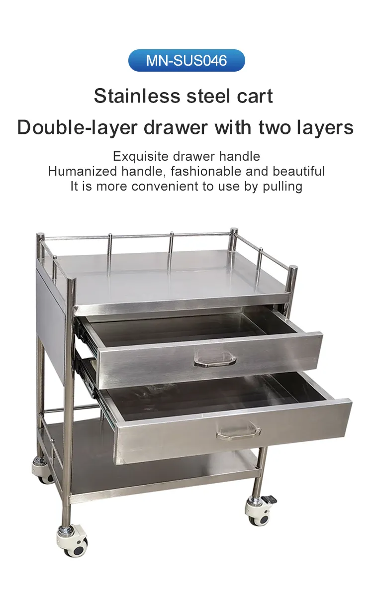 MN-SUS046 Hot Selling High Quality Hospital or Clinic Stainless Steel Medical Trolley for Easy Sliding with 2 Drawers