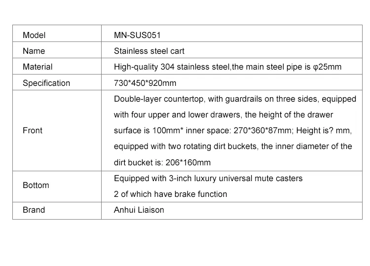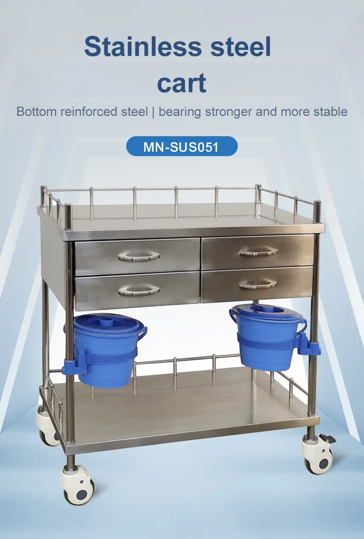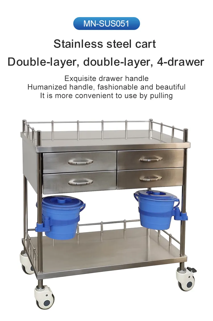 MN-SUS051 High Quality Stainless Steel Medical Trolley Cart For Hospital Or Clinic Hospital Trolley Cart Mobile with 4 Drawers