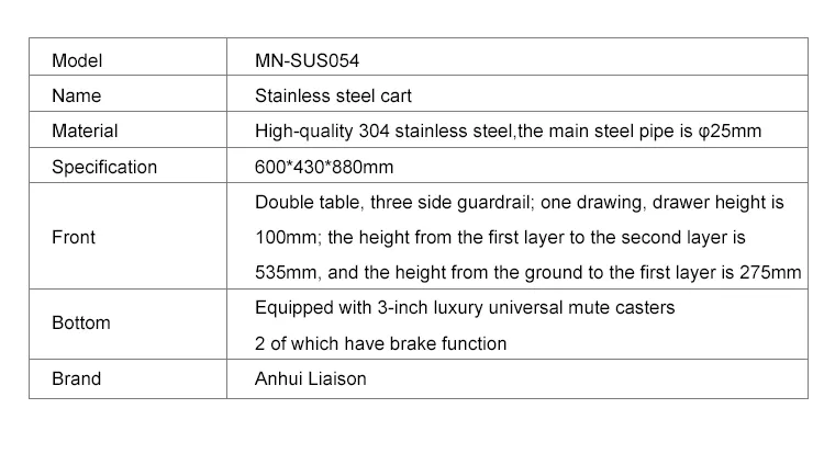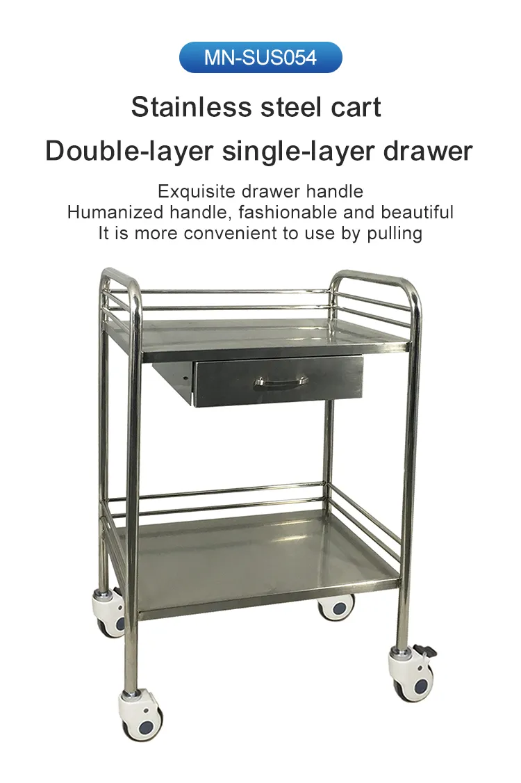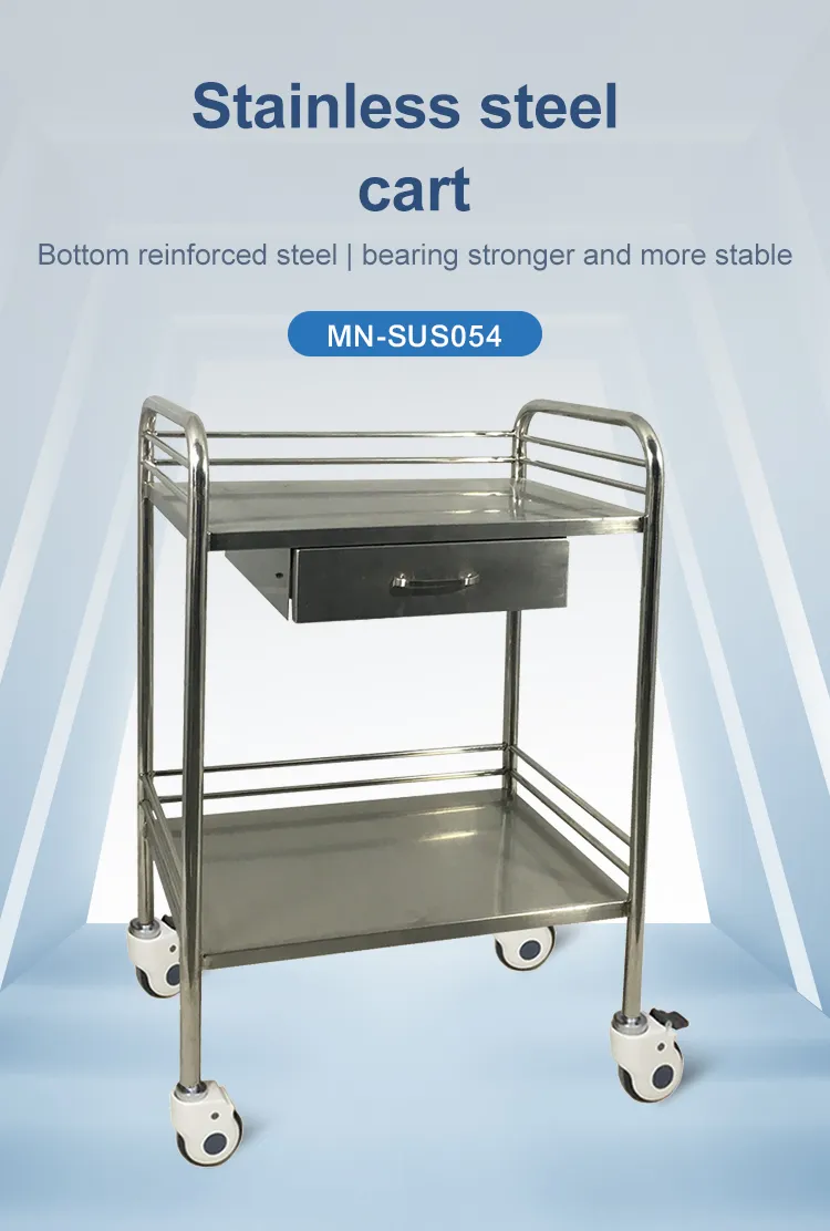 MN-SUS054 Simple Hospital Service Cart Stainless Steel Medical Instrument Trolley