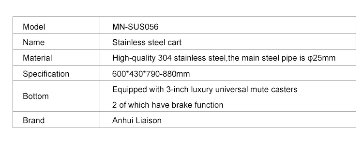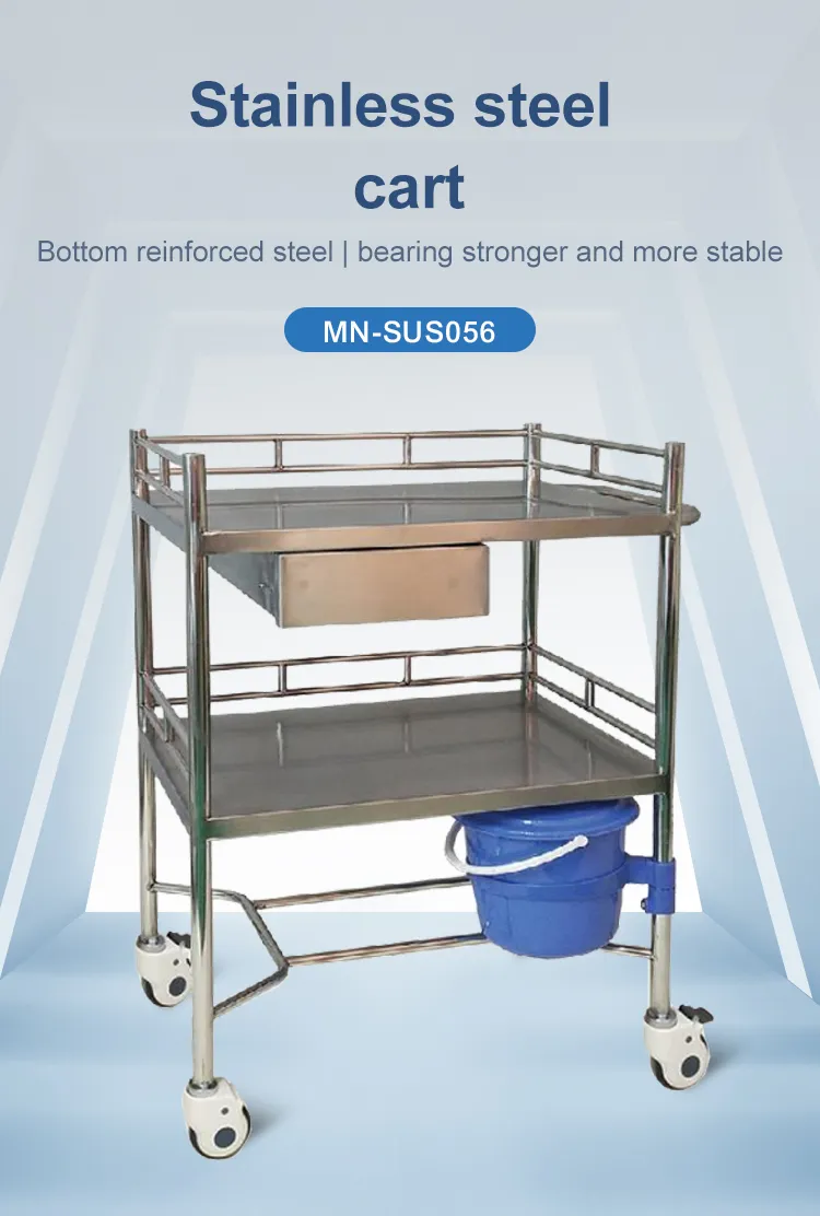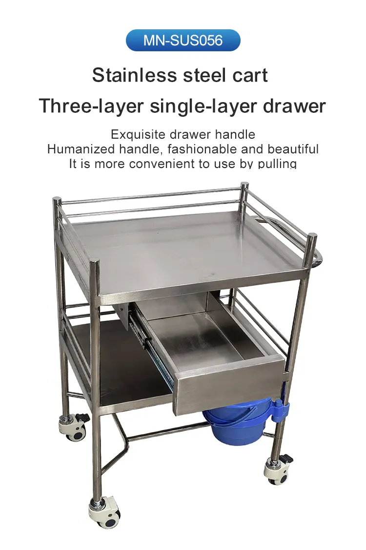 MN-SUS056 Good Quality Hospital Service Cart Stainless Steel Medical Instrument Trolley with 1 Barrel& 1 Drawer