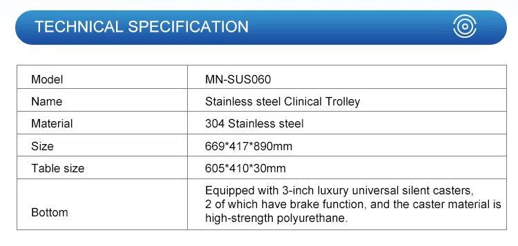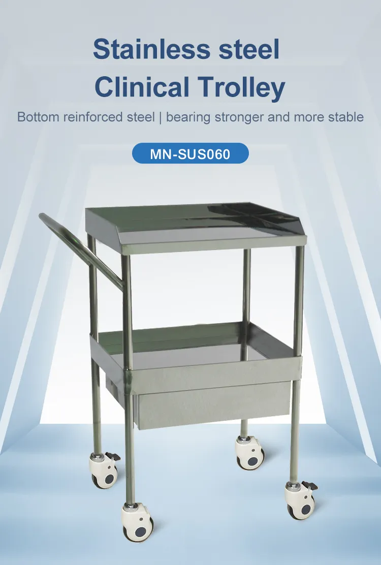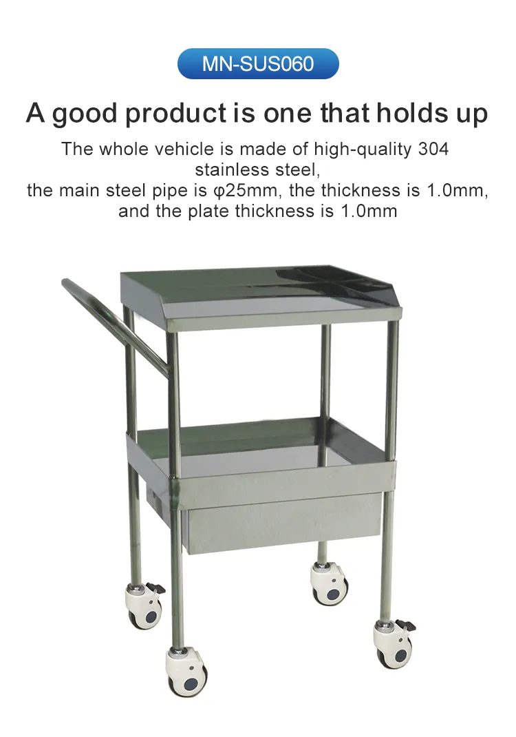 MN-SUS060 Double-layer thickened stainless steel trolley, silent material, instrument and equipment mobile turnover trolley, tool trolley