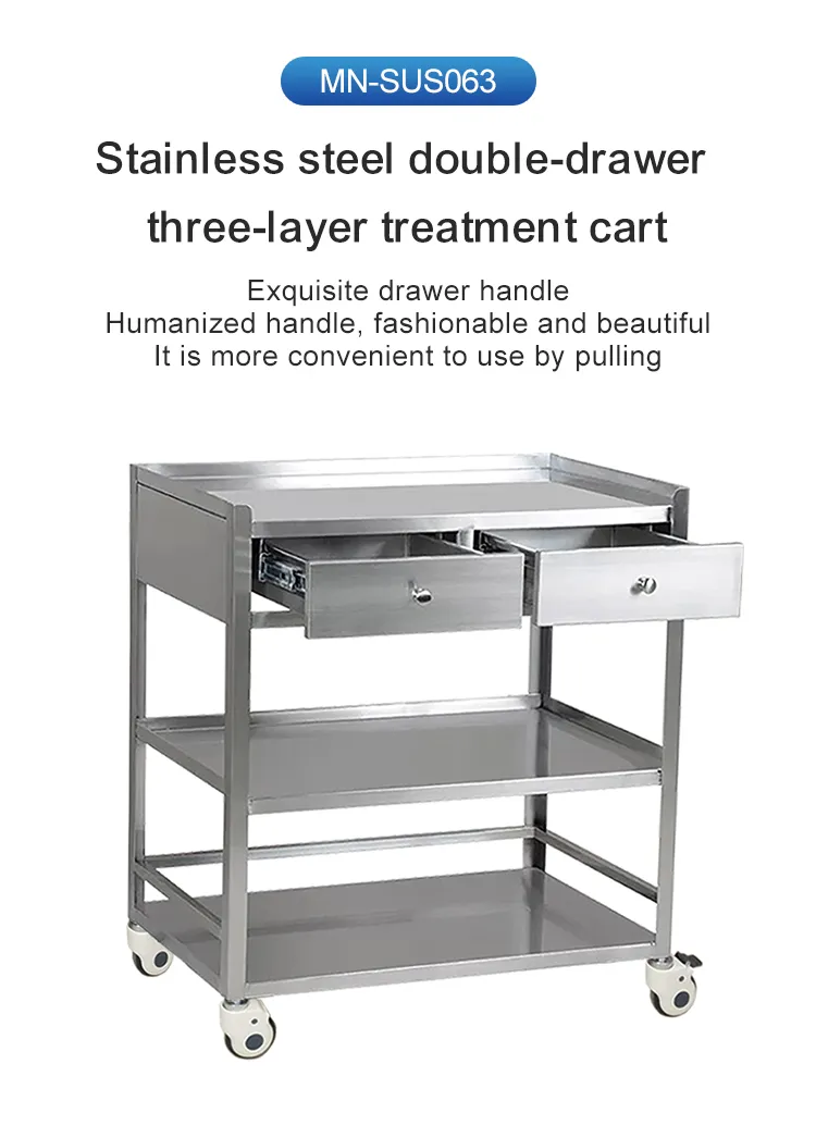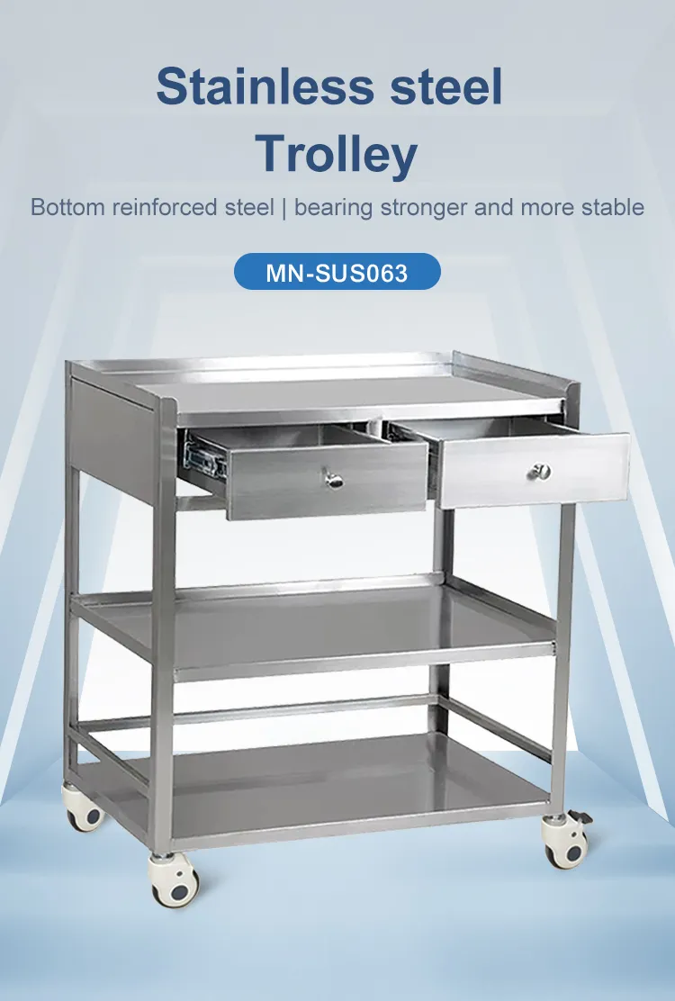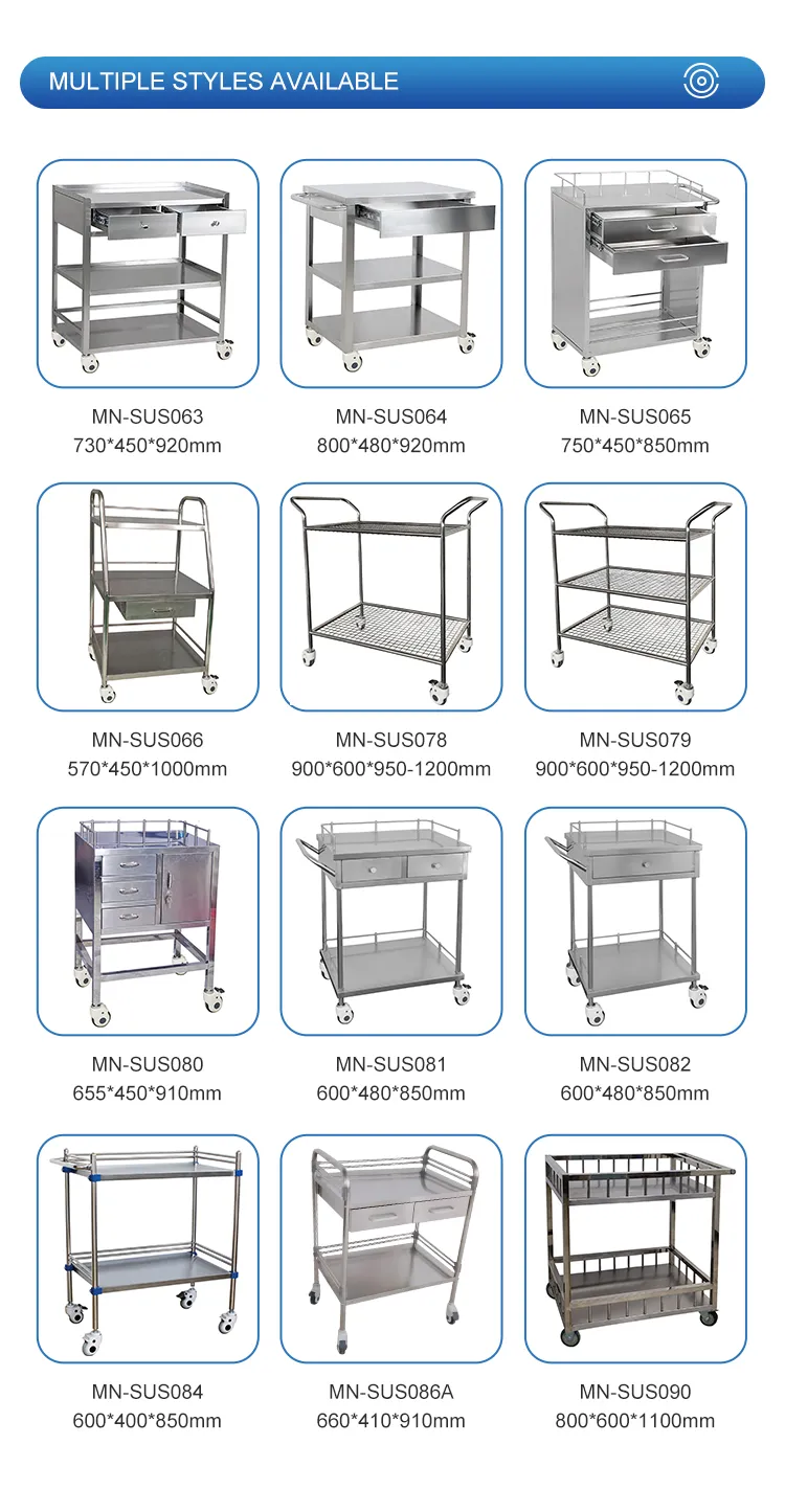 MN-SUS063 New type of stainless steel medical trolley for hospital emergency treatment