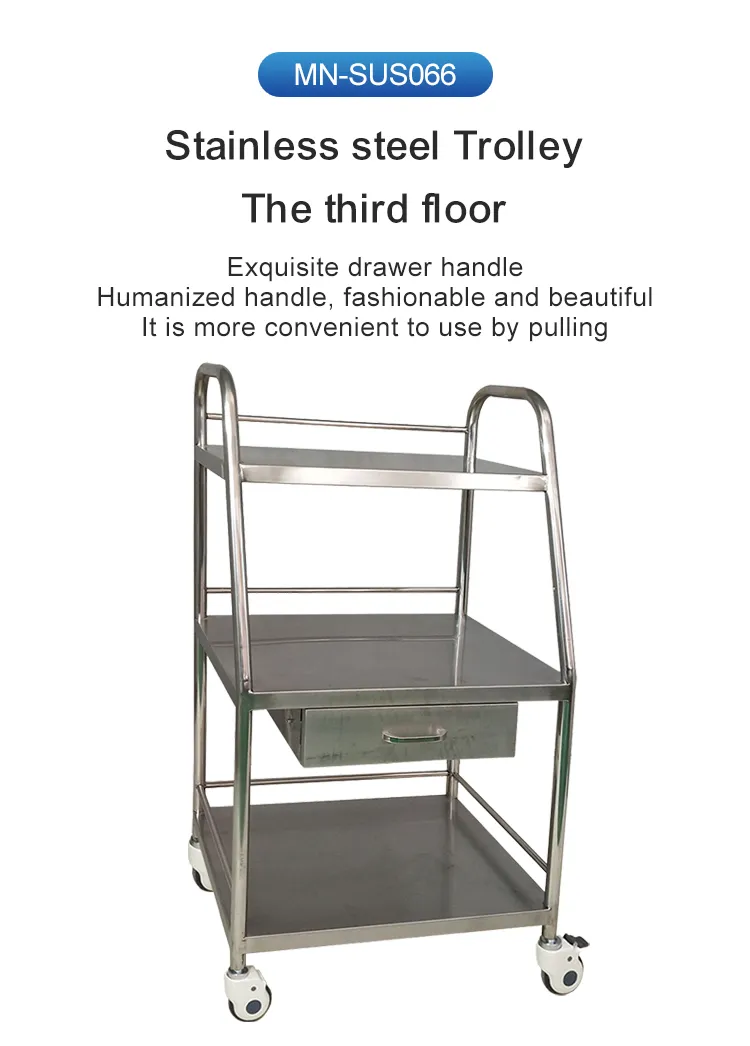 MN-SUS066 Best-selling stainless steel assembled drug treatment trolley medical handcart