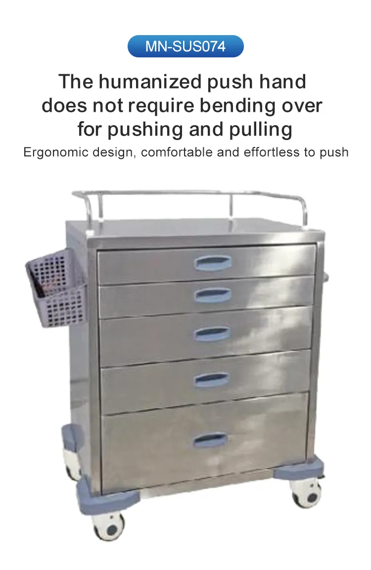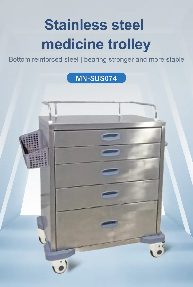 MN-SUS074 Medical 304 stainless steel wheeled trolley for hospitals