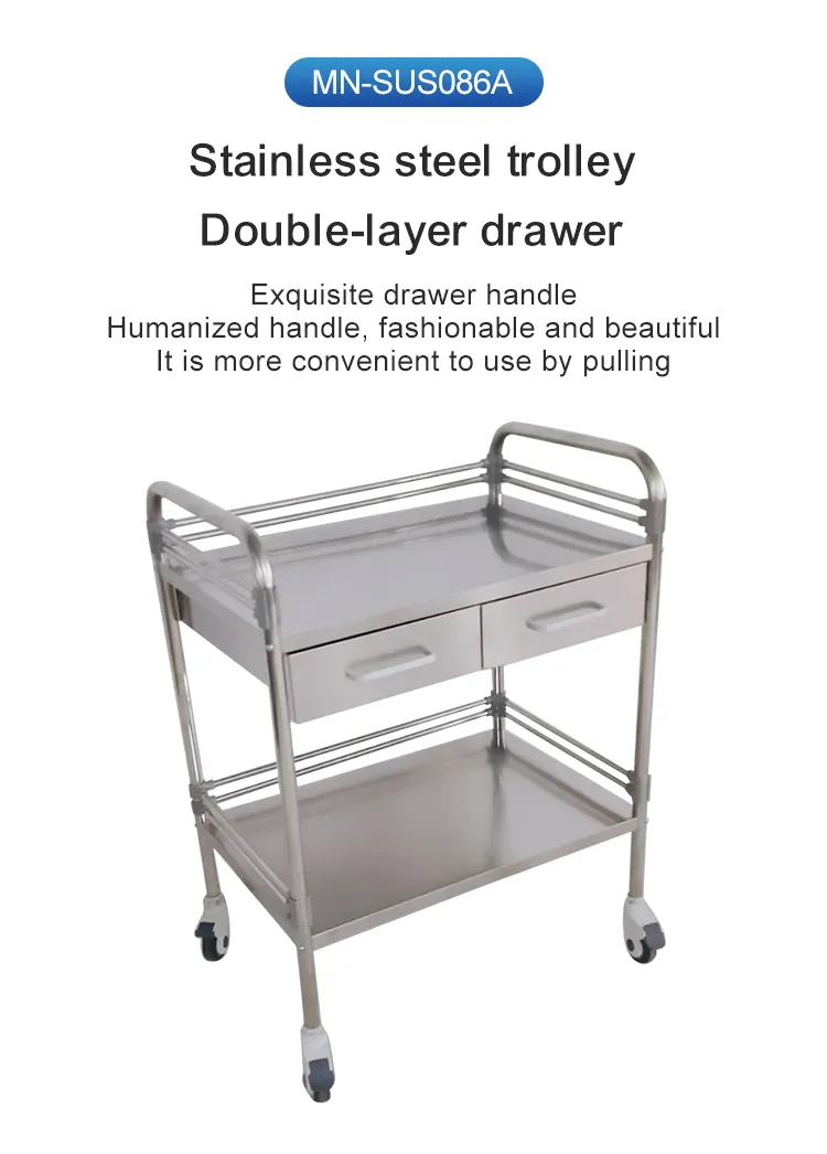 MN-SUS086A Medical clinic, surgical instrument, hospital stainless steel storage trolley with drawers
