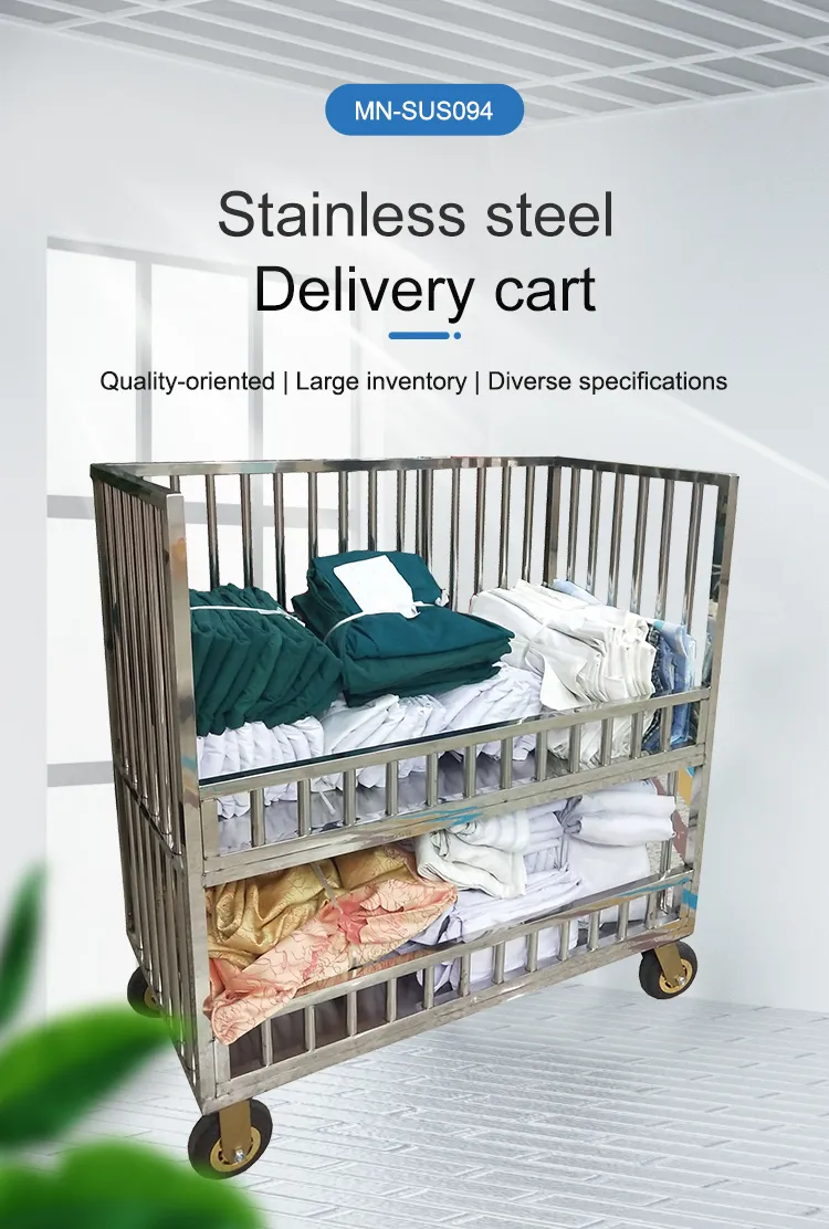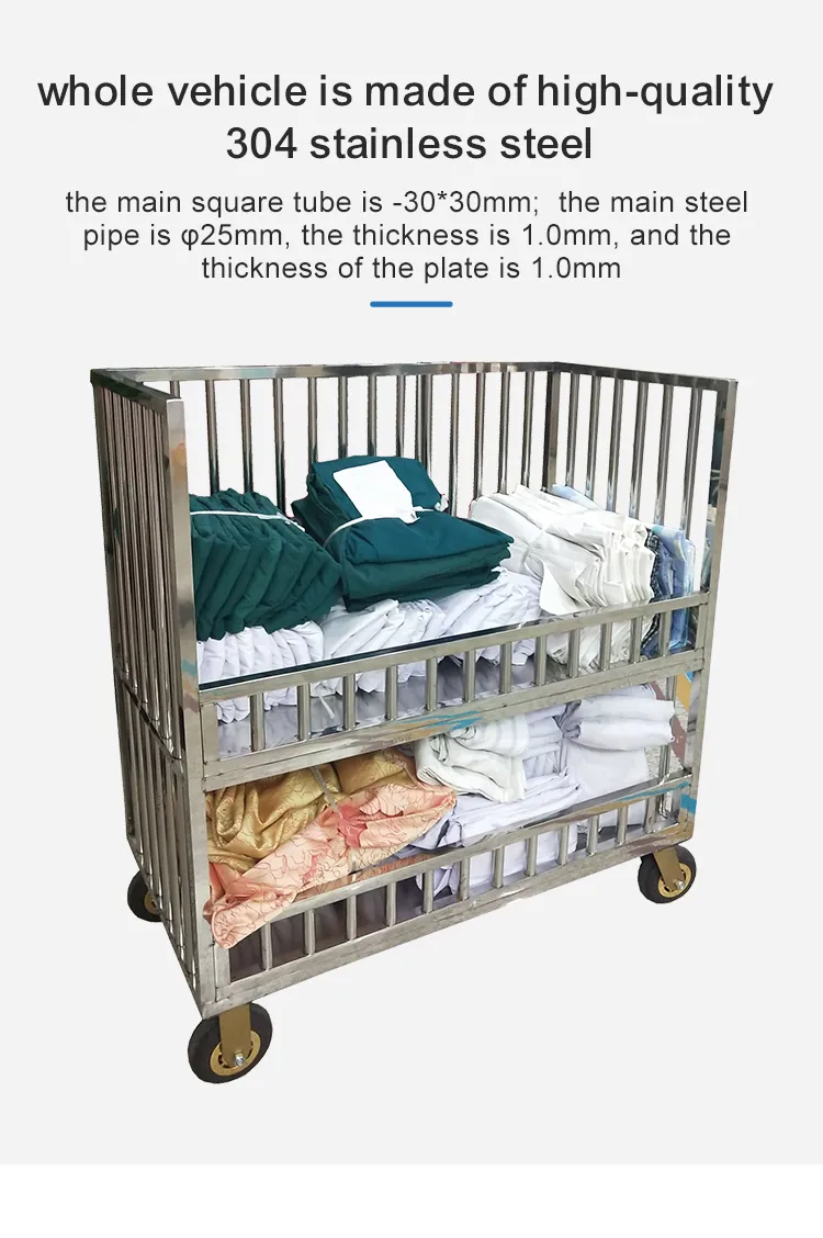 MN-SUS094 Two-layer stainless steel laundry linen trolley, home service trolley, dirty linen service trolley, cage