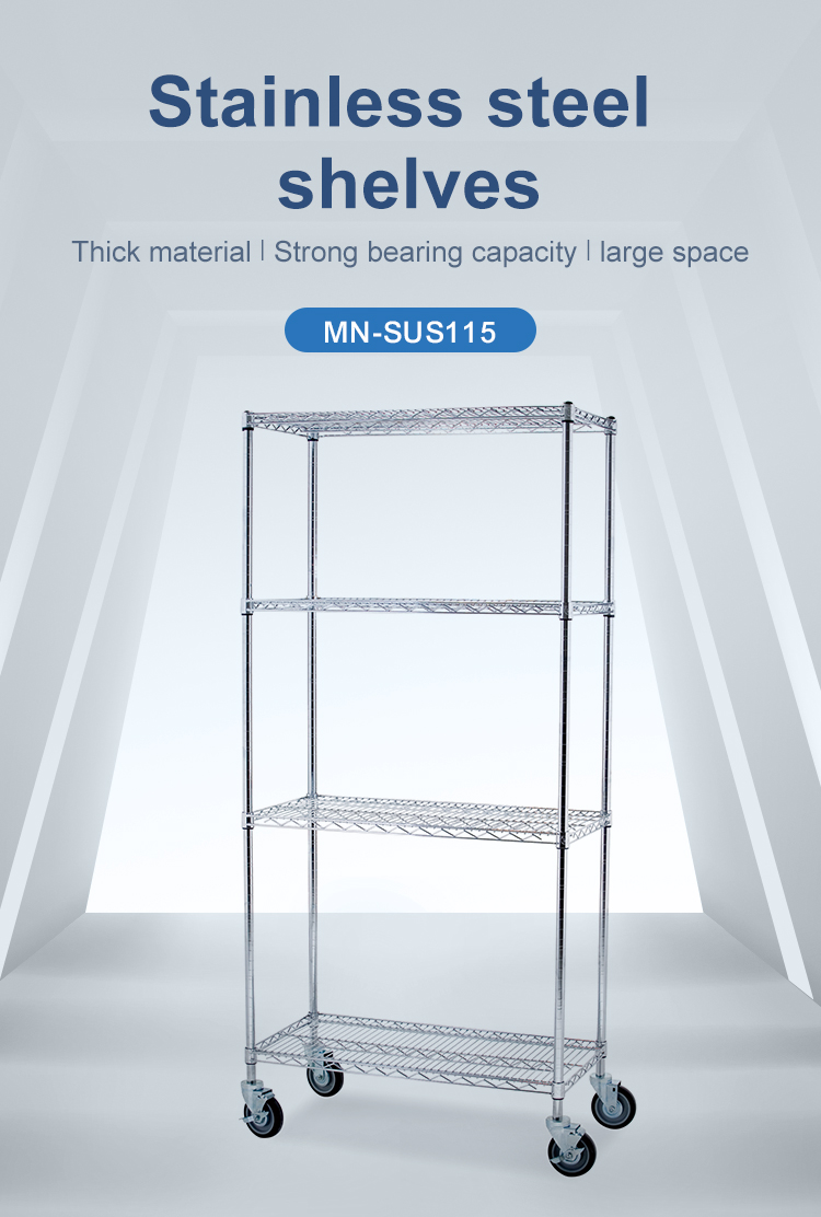 MN-SUS115 4-Shelf Adjustable Steel Shelf NSF Metro Office Industrial Storage Racking Chrome Plated Wire Metal Shelving
