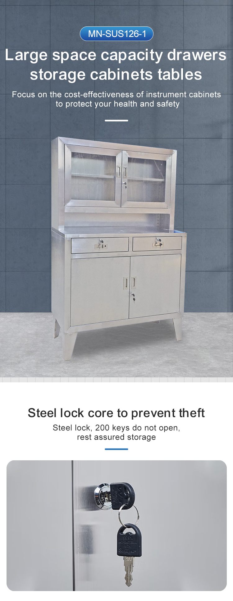 MN-SUS126-1 Stainless steel medical instrument cabinet, pharmacy medicine cabinet