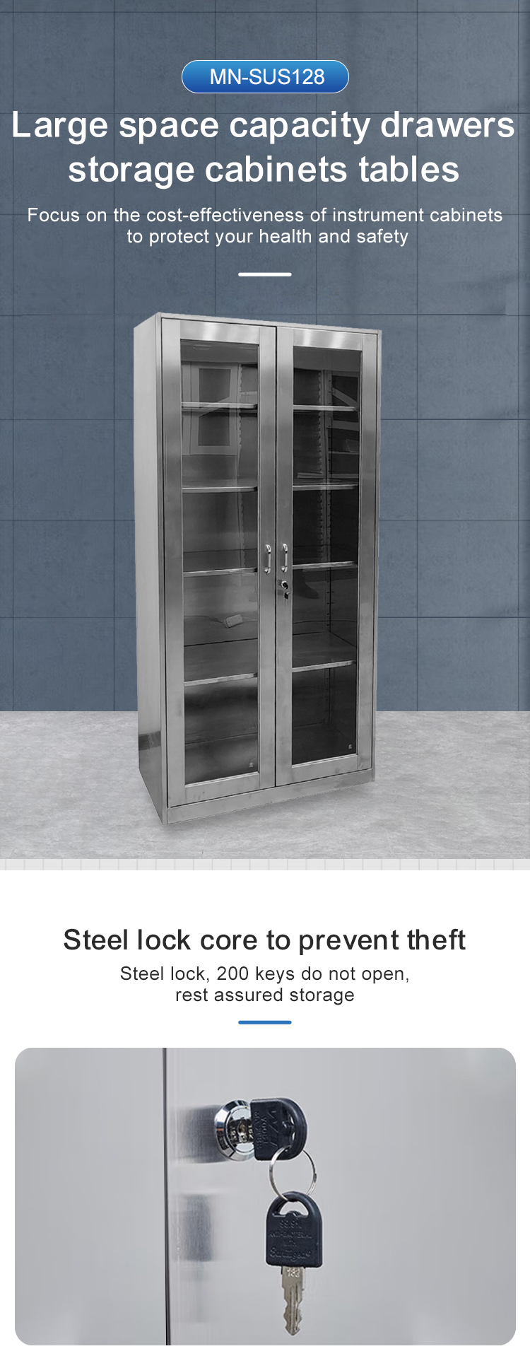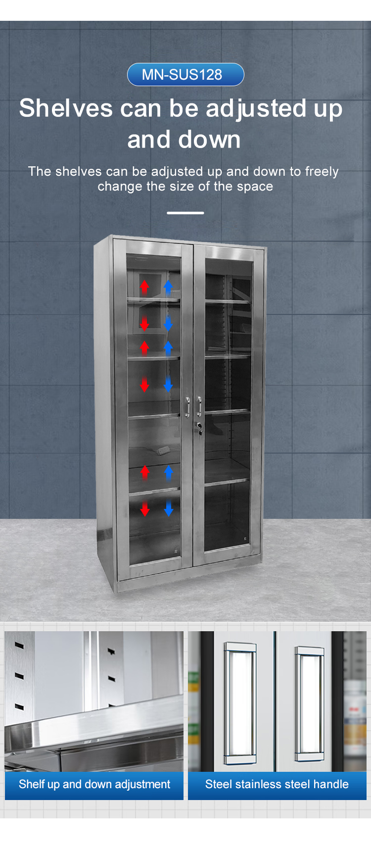 MN-SUS128 Stainless steel instrument storage cabinets, hospital medical furniture, metal clinic ward cabinets, glass