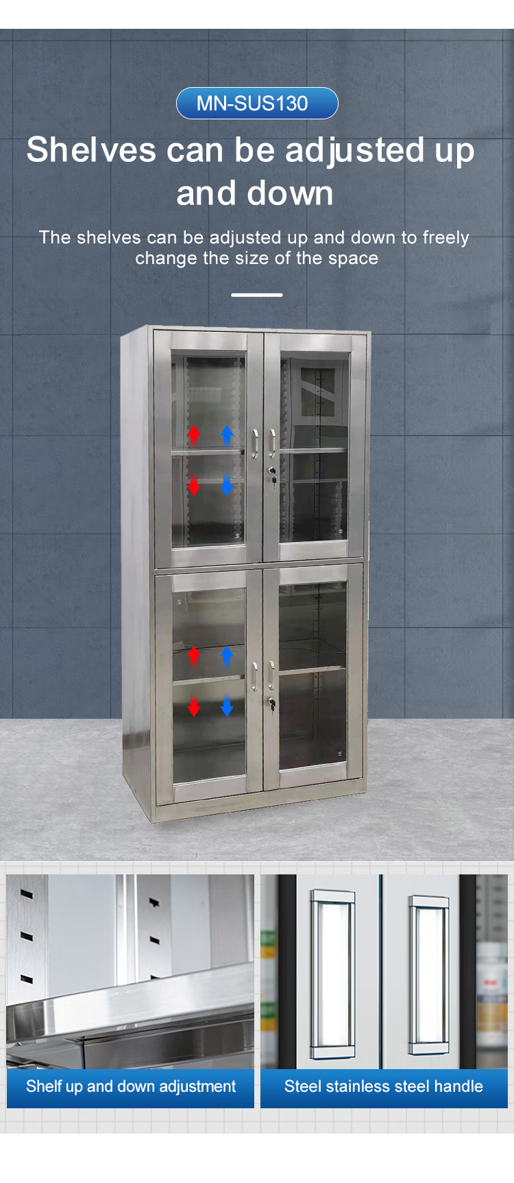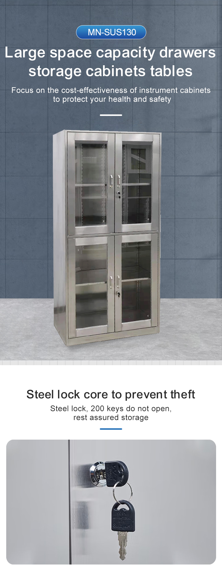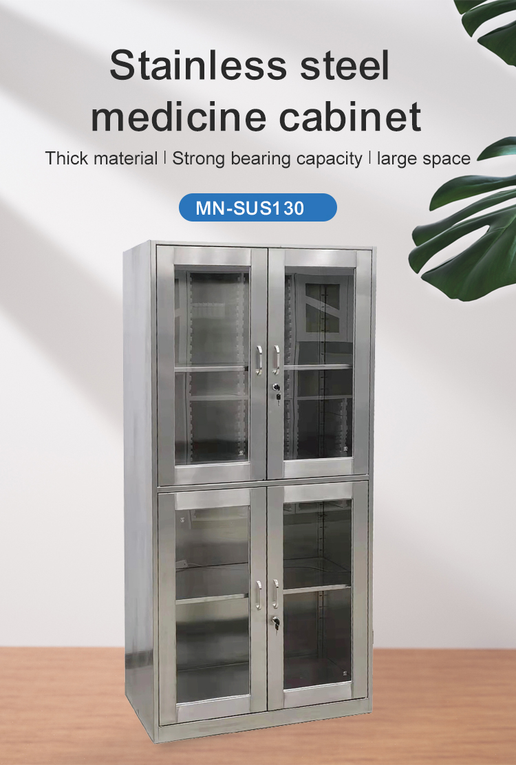 MN-SUS130 Stainless steel lockable glass door medicine cabinet for medical hospitals