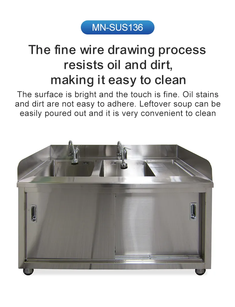 MN-SUS136 Double-bowl Stainless Steel Sink with Lifetime rust-proof for Hospital and Kitchen