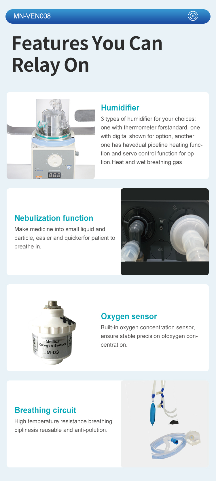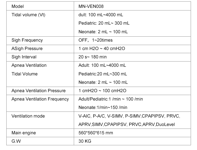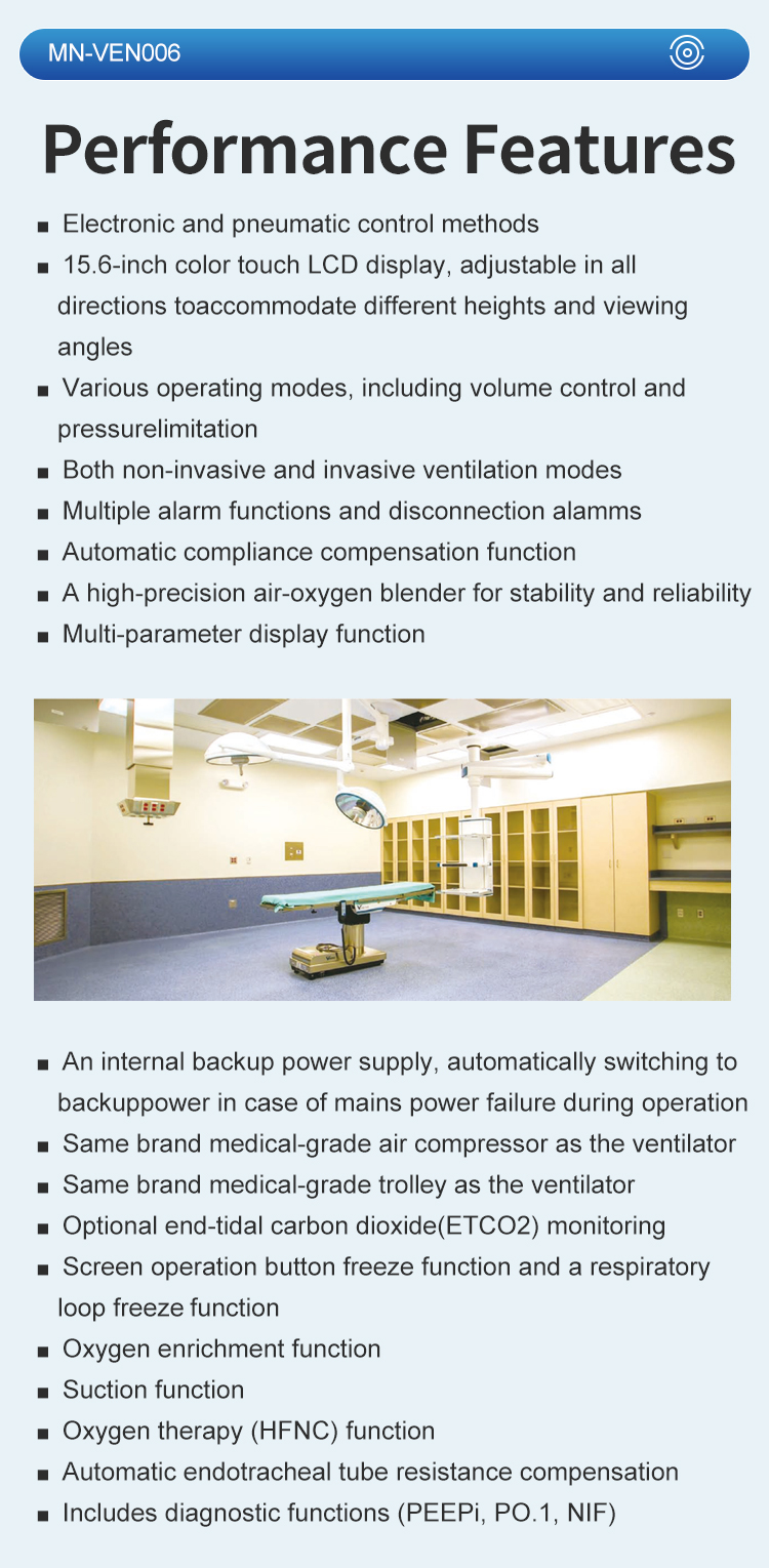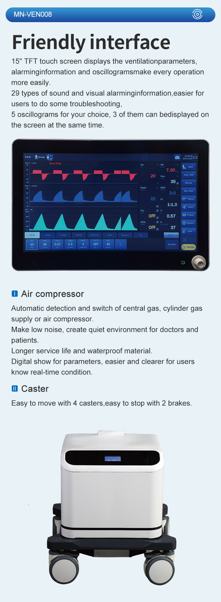MN-VEN008 High Quality Ventilator Machine Electric Surgical Breathing Apparatus System