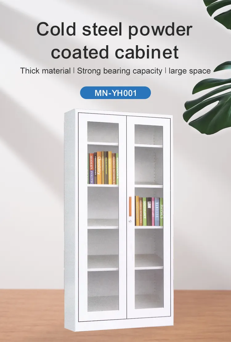 MN-YH001 Epoxy Coated Steel Hospital Furniture Cabinet with Glass Doors