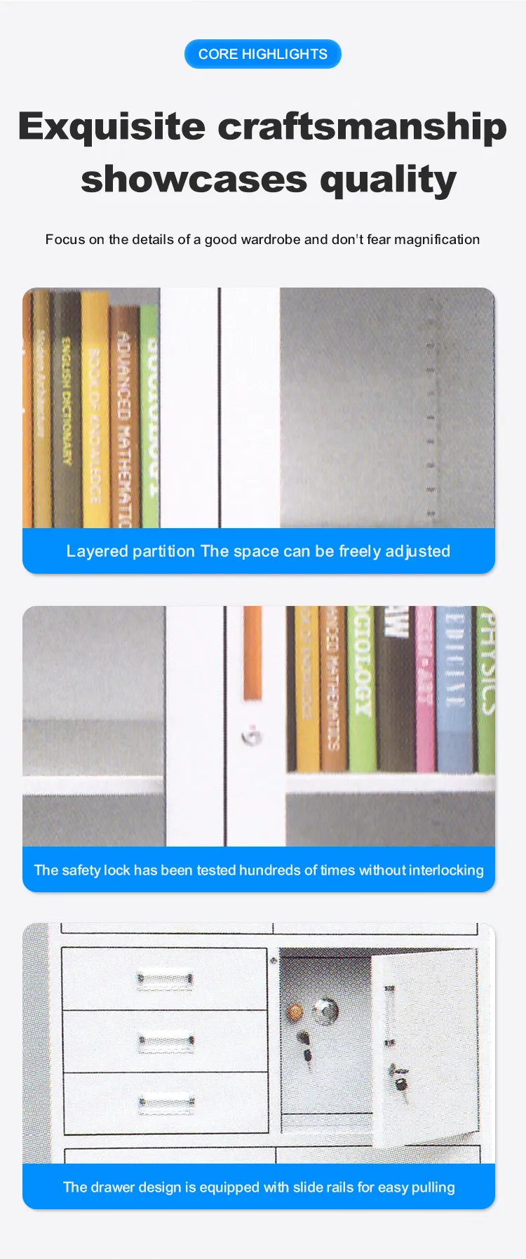 MN-YH006 3-Drawer File Cabinet Epoxy-Coated Steel Metal Locker with Lock Hospital Furniture
